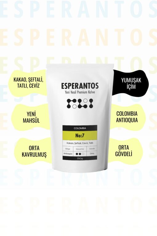 ESPERANTOS Colombia No:7, Filtre Kahve Öğütülmüş, Yumuşak Içim ürünü ucuz fiyat, hızlı kargo ve kredi kartına 12 ay taksit imkanı ile hemen sitemizden sipariş verin.