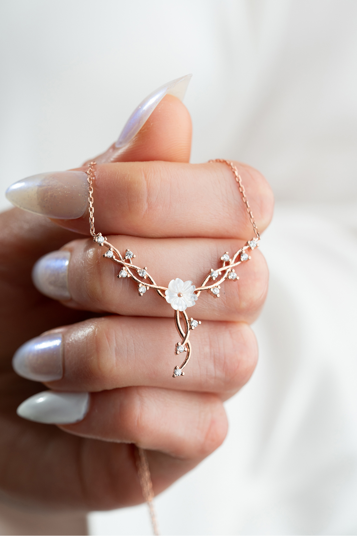 ESSARE 925 Ayar Gümüş Kadın Sarmaşık Model Manolya Çiçeği Kolye