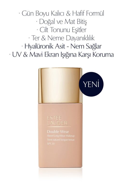 Estee Lauder Double Wear Sheer Işıltı ve Nem Etkili Hafif Dokulu Fondöten SPF20 – 30ml Renk:2C2 Pale Almond en ucuz fiyata kozmetikara.com sitemizden sipariş verebilirsiniz.