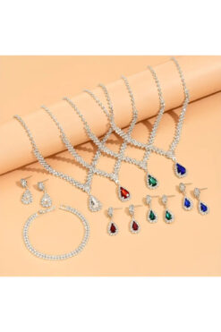 Estilo Lingerie GÜMÜŞ KAPLAMA DAMLA TAŞLI VİCTORİA PIRLANTA GÖRÜNÜMLÜ TAKI SETİ GELİN TAKI NİŞAN TAKI HEDİYE TAKI