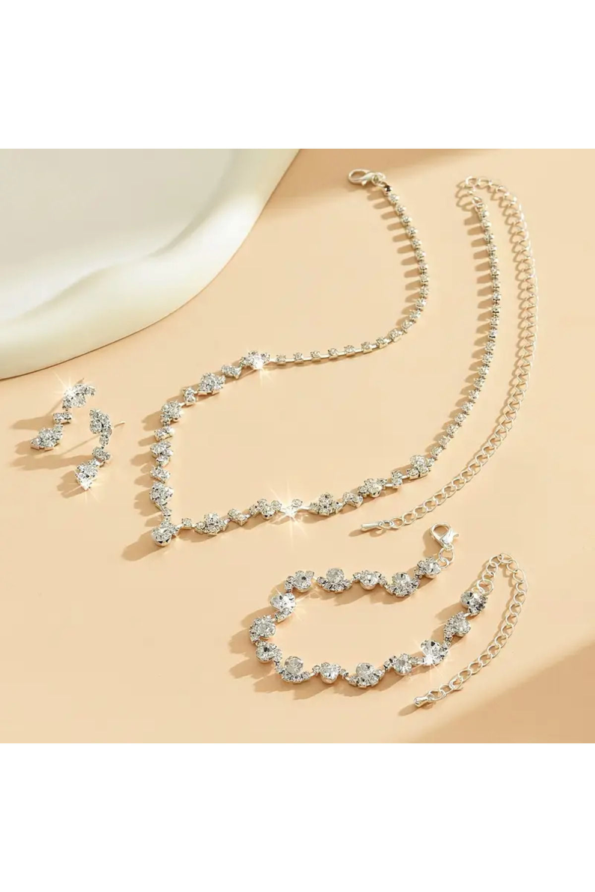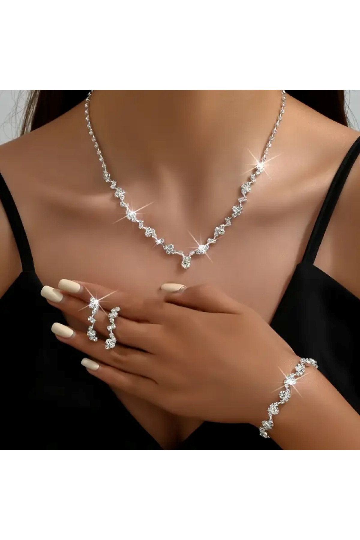 HUBANN Gümüş Kaplama Su Yolu Stonefans Kolye Küpe Ve Bileklik Seti Gelin Takı Seti Nişan Seti Parti Davet S