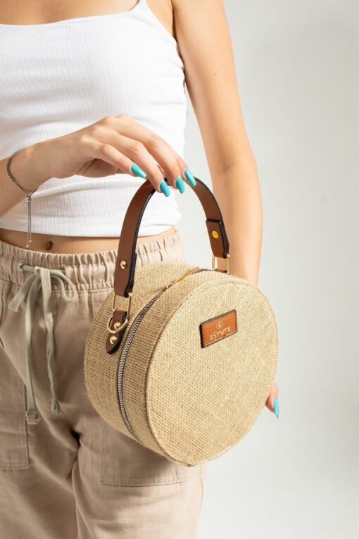 Basic koleksiyonunun sade ve şık tasarımıyla her ortama uyum sağlayan yuvarlak hasır çanta, günlük kullanım için idealdir