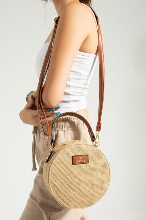 ESTUTE Davul yuvarlak hasır çanta el ve omuz çantası