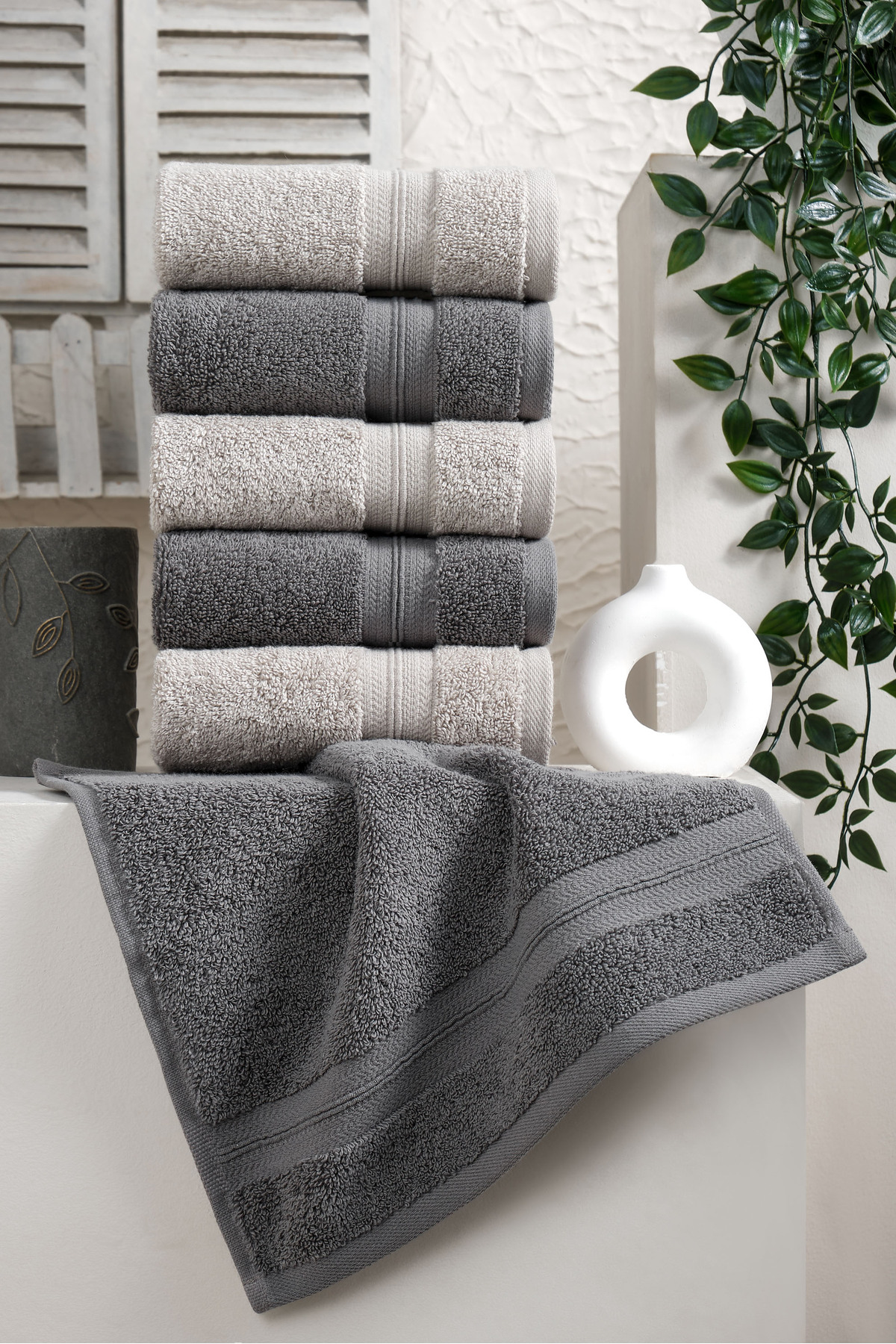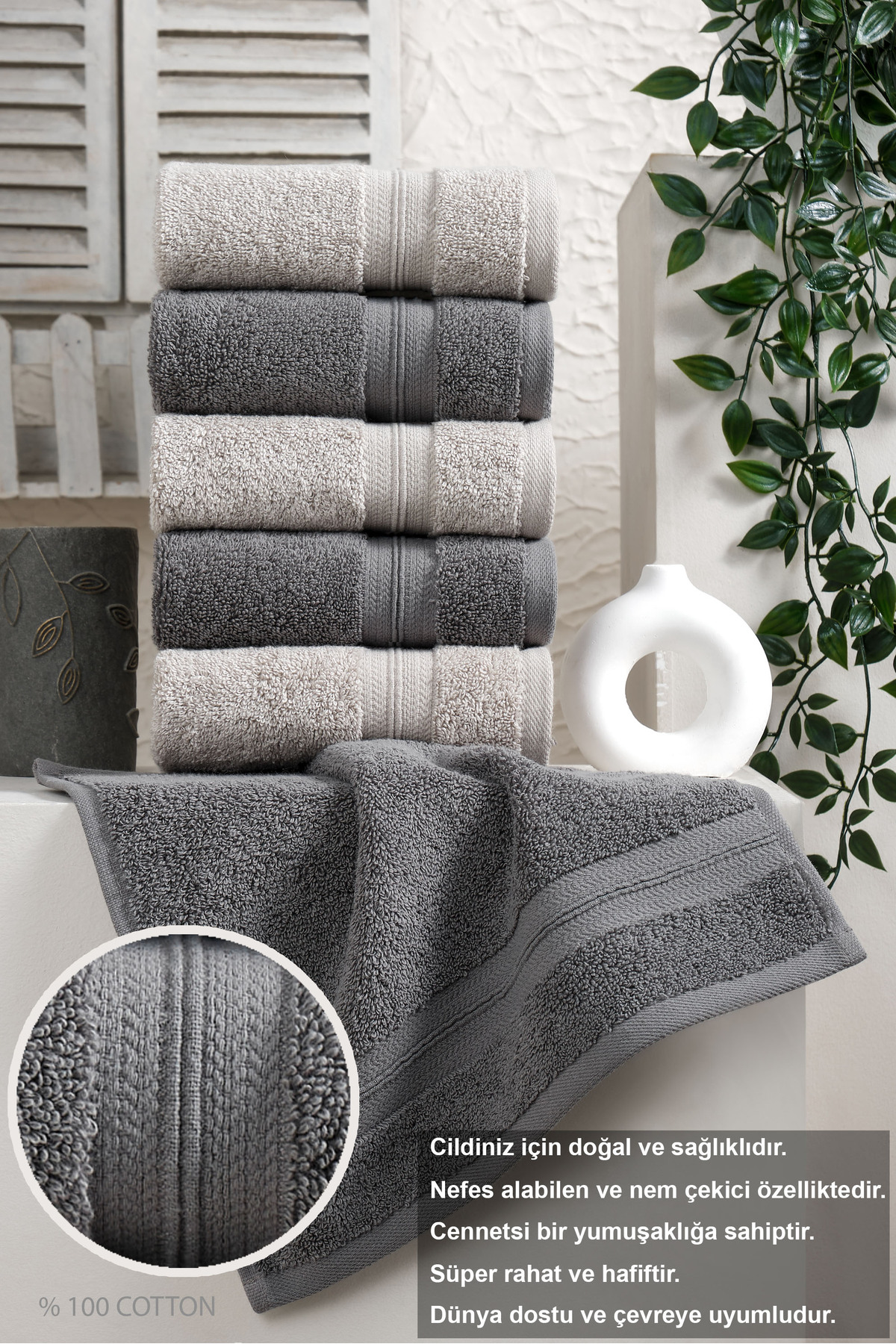 eumenia Soft Touch Kitchen %100 Pamuklu 6’lı El & Yüz ve Mutfak Havlu Seti 30×30 cm | Antrasit – Gri
