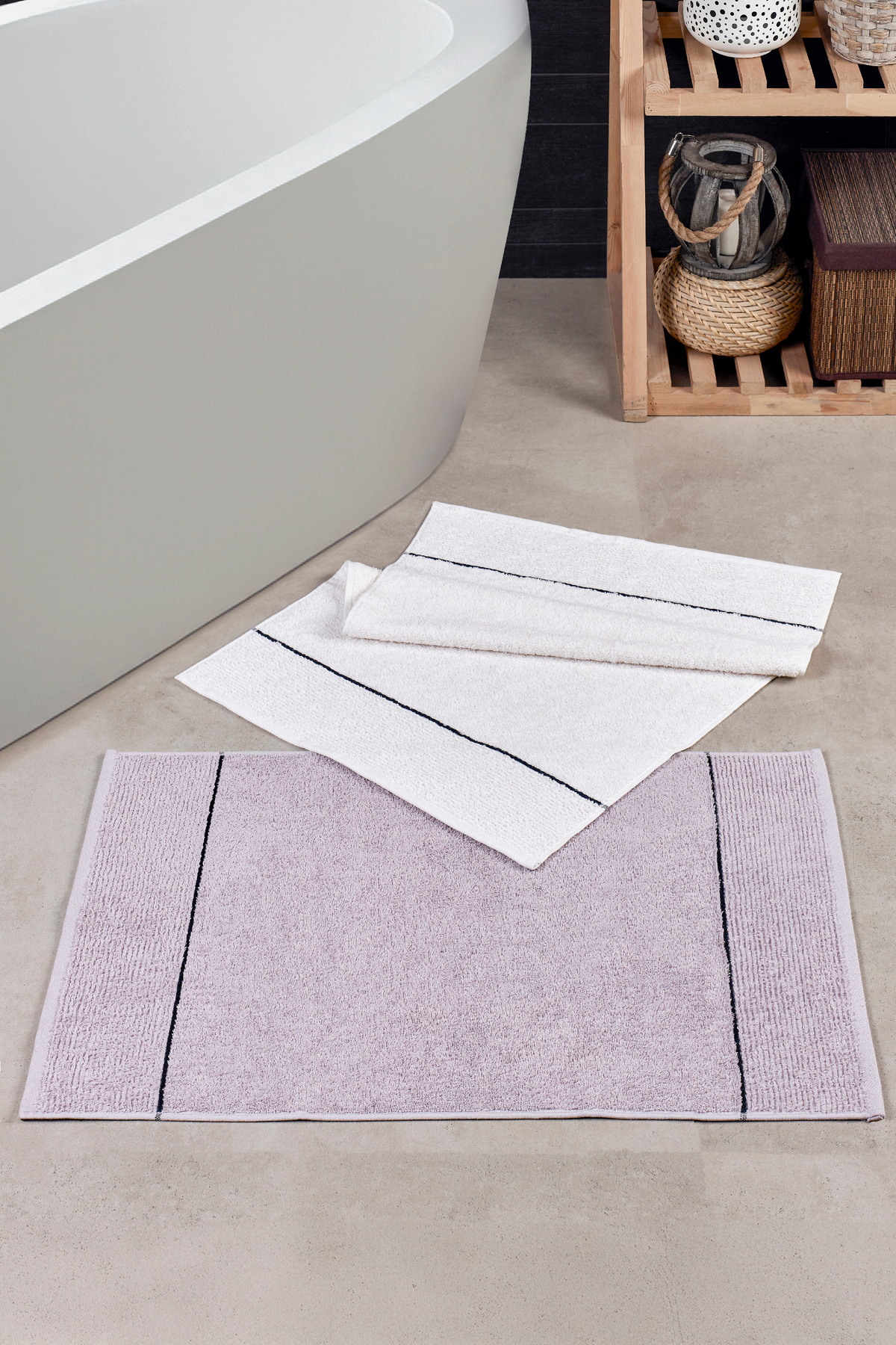 eumenia Valona 50×70 cm 2’li Ayak Havlusu/Banyo Paspası | Gri-Krem