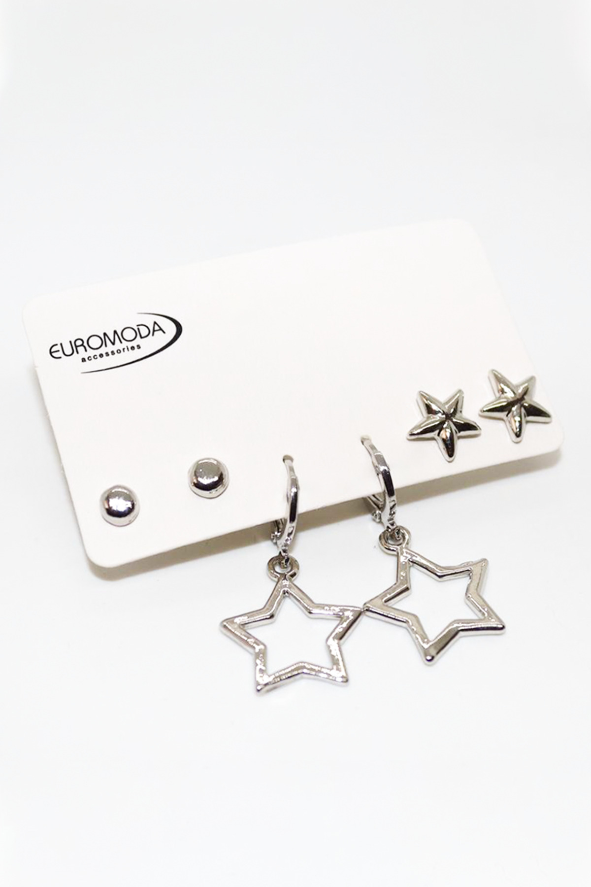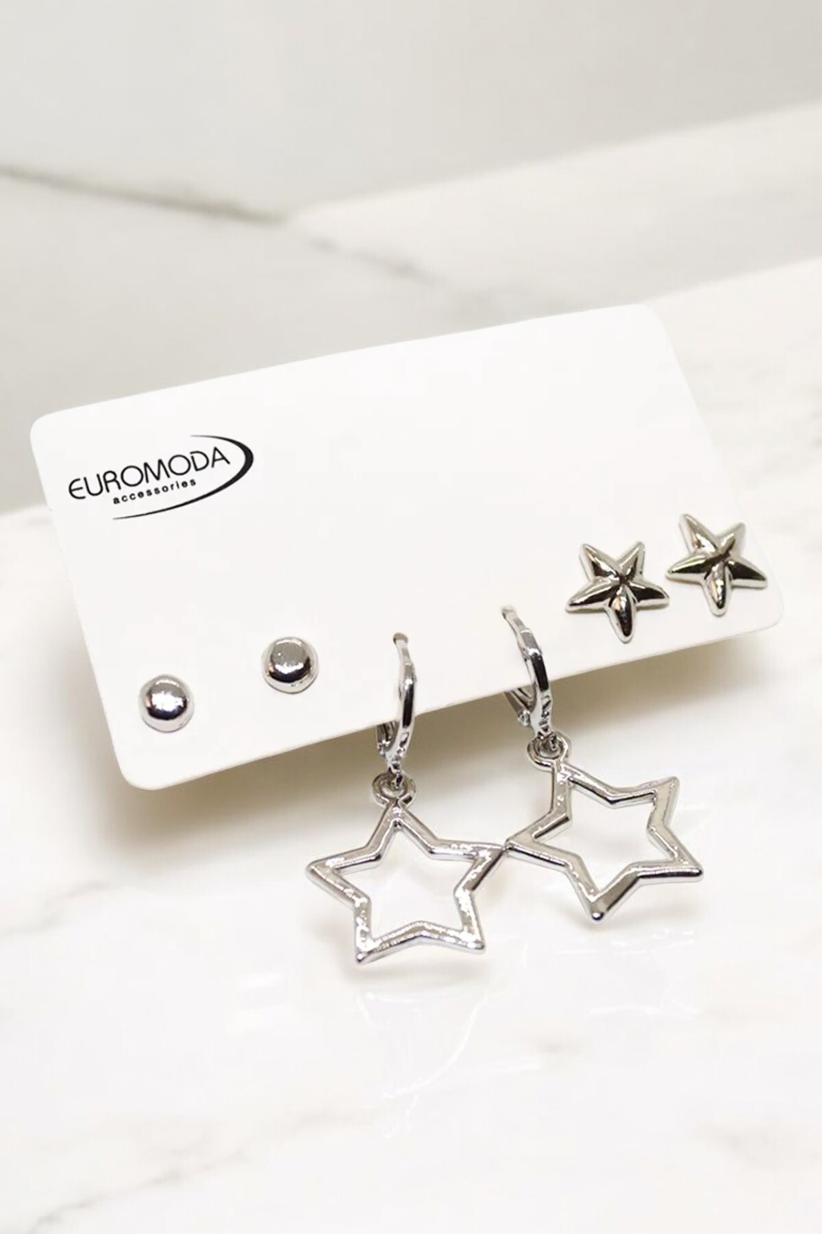 EUROMODA Yıldız Tasarımlı Top Küpeli 3lü Küpe Seti
