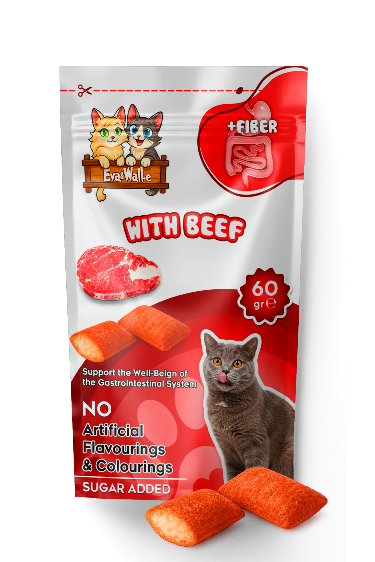 Eva & Wall-e Biftek & Malt Özlü Kedi Ödül Maması 60 g | Sindirim ve Tüy Sağlığını Destekleyen Çıtır Atıştırmalık