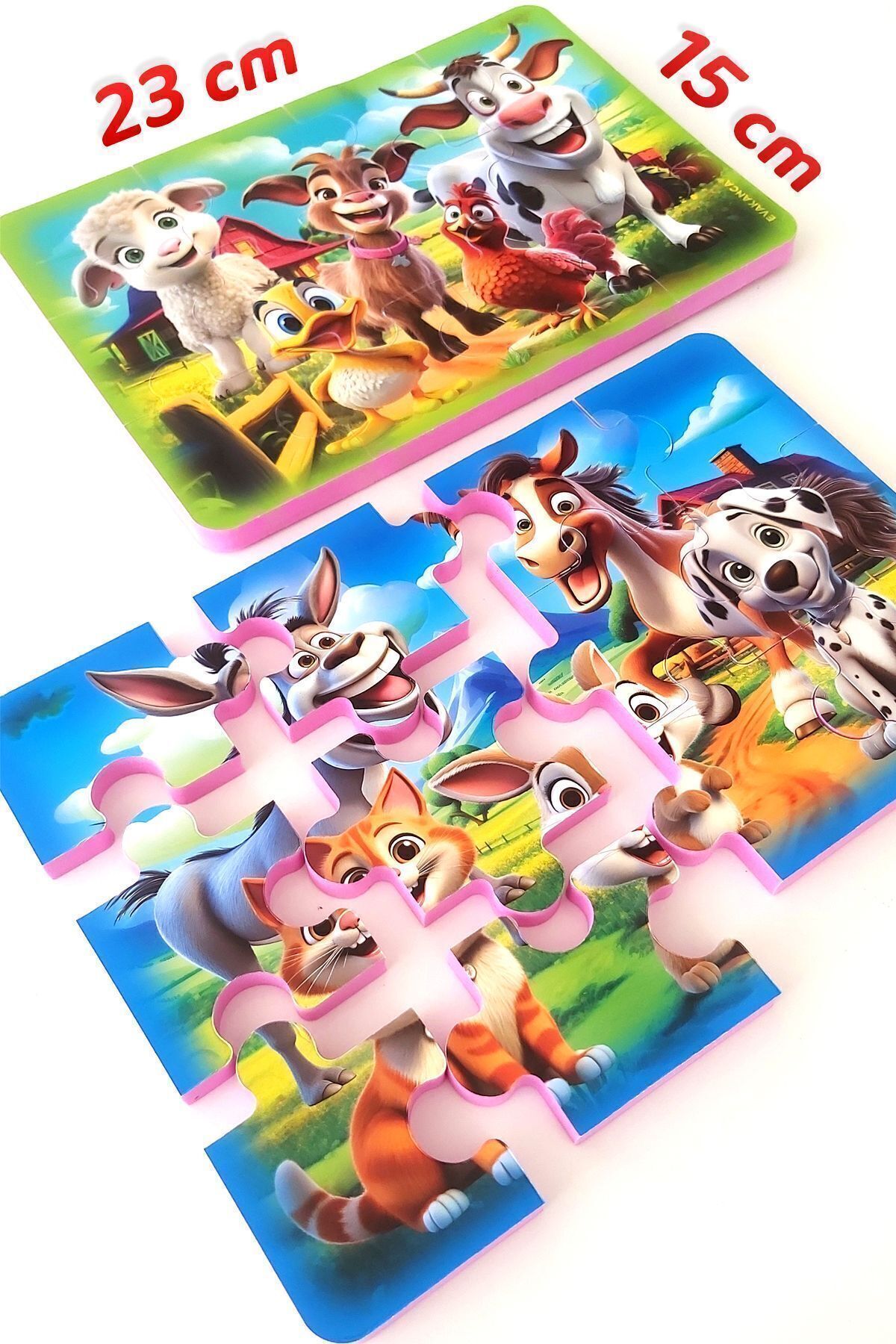 EVAKANCA 12 Parça Kalın Çocuk Puzzle Yapboz 2’li Çiftlik Hayvanları