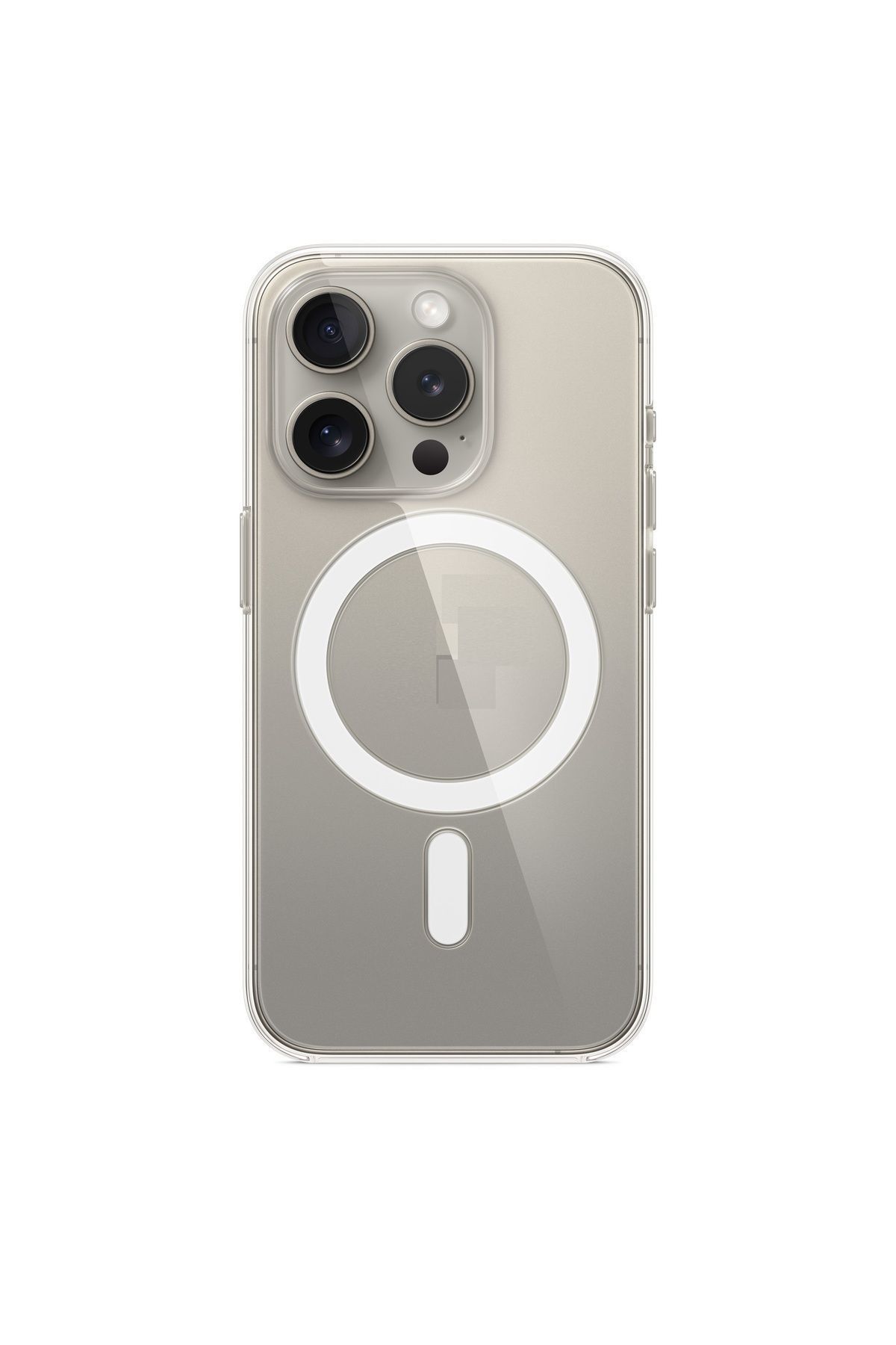 iPhone 15 Pro modelinize tam uyum sağlayan şeffaf kılıf, telefonunuzu korurken şık bir görünüm sunar