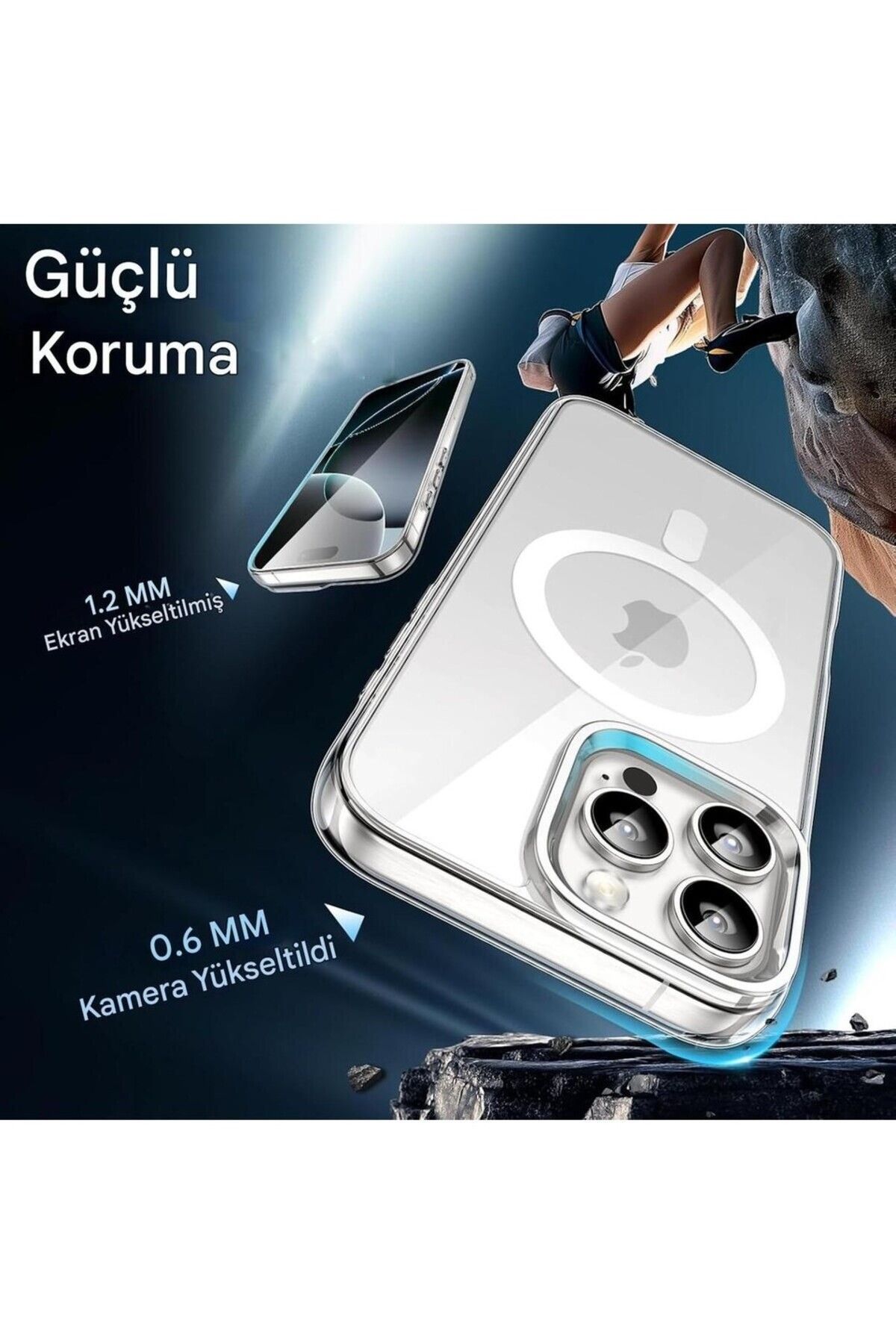 EVAX (MAGSAFE KILIF) Iphone 16 Pro Max Için Magsafe Özellikli Şeffaf Kılıf Wireless Silikon Kılıf