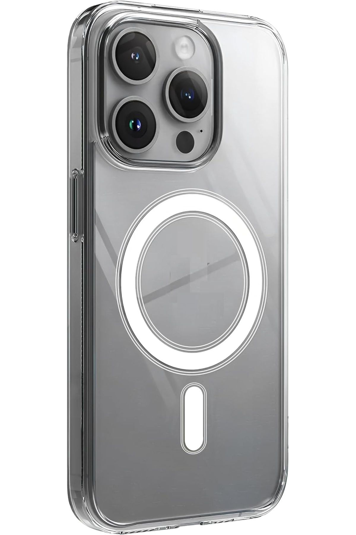 SERT MİKA KILIF) iPhone 15 Pro Uyumlu Şeffaf Sert Mika SARARMAZ Magsafe İnce Fit Kılıf