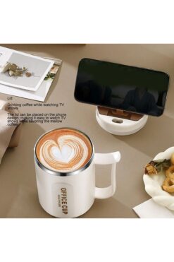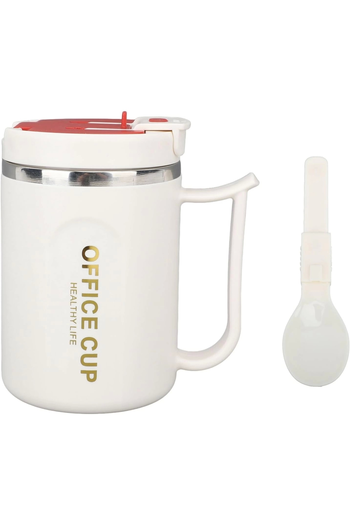 Evistro Paslanmaz Çelik Sızdırmaz Kaşıklı Kahve Termosu 500 ML Beyaz-Kırmızı Kapaklı İthal Ürün