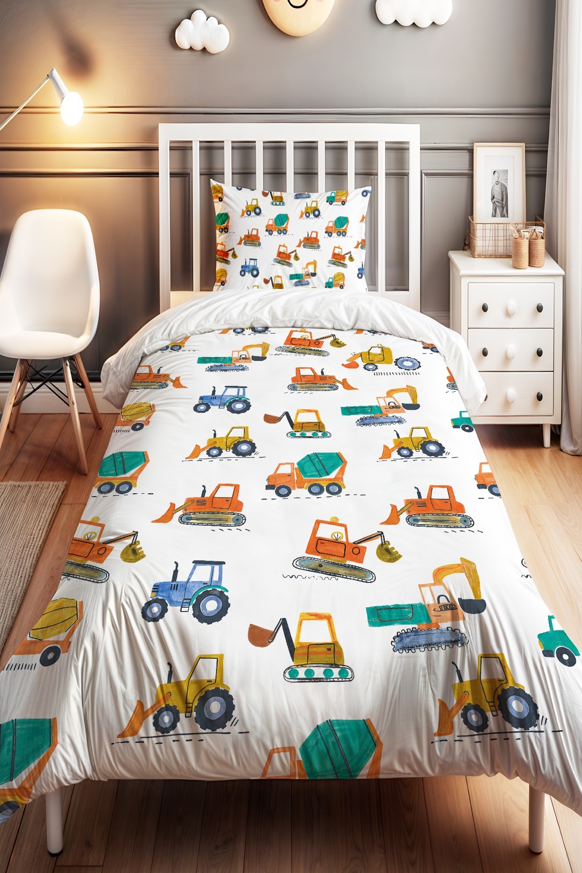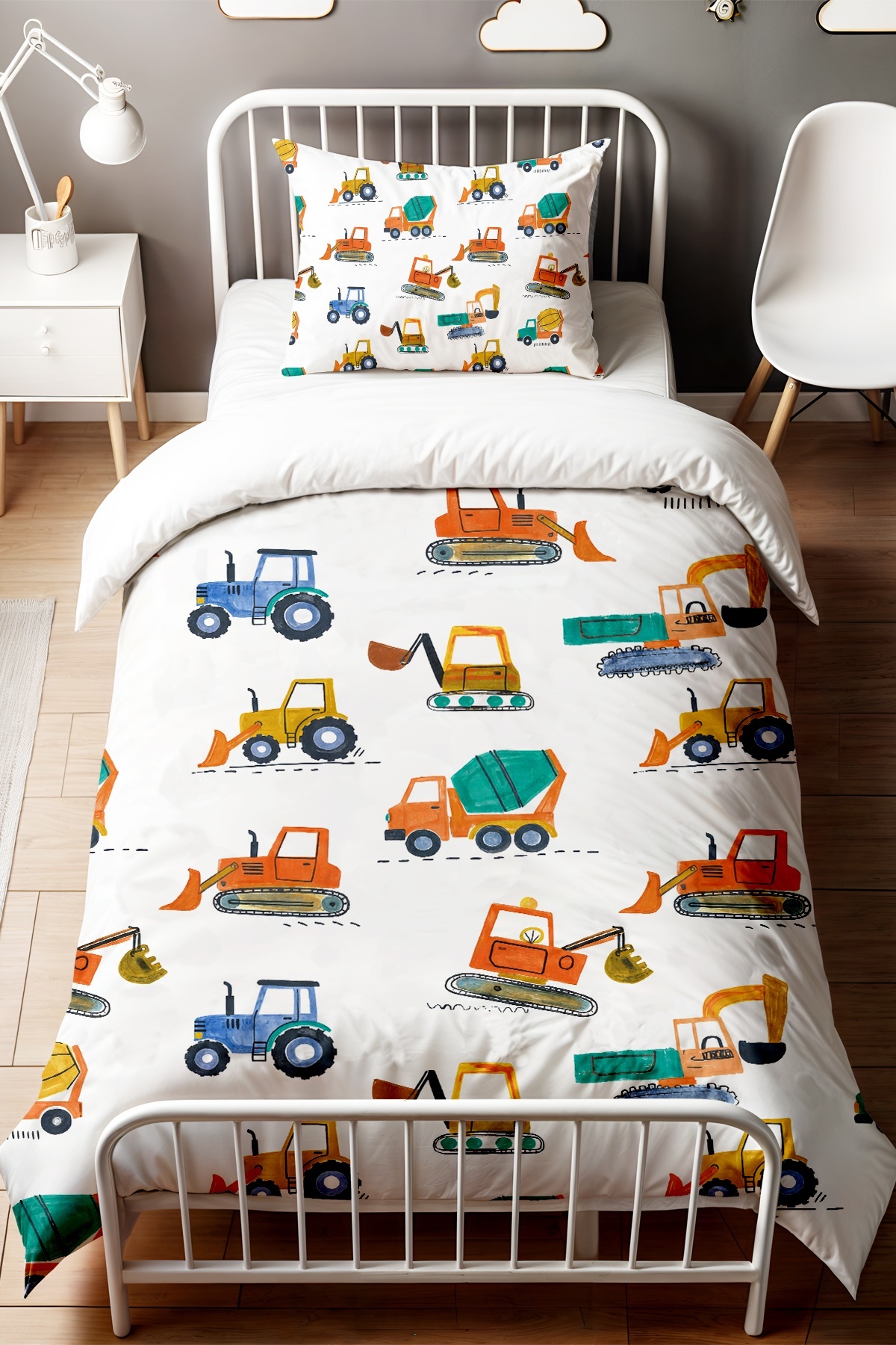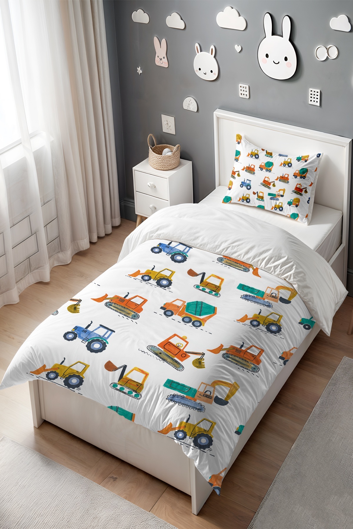 EVPANYA Çalışkan Makineler Desenli Tek Kişilik Bebek Çocuk Nevresim Seti