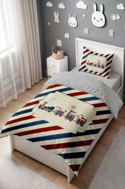 EVPANYA Kırmızı Mavi Çizgide Yolculuk Desenli Tek Kişilik Bebek Çocuk Nevresim Seti