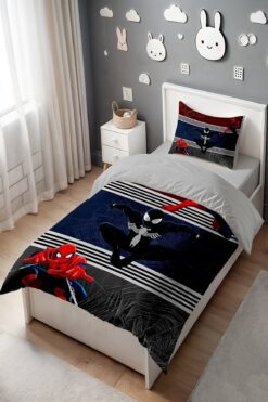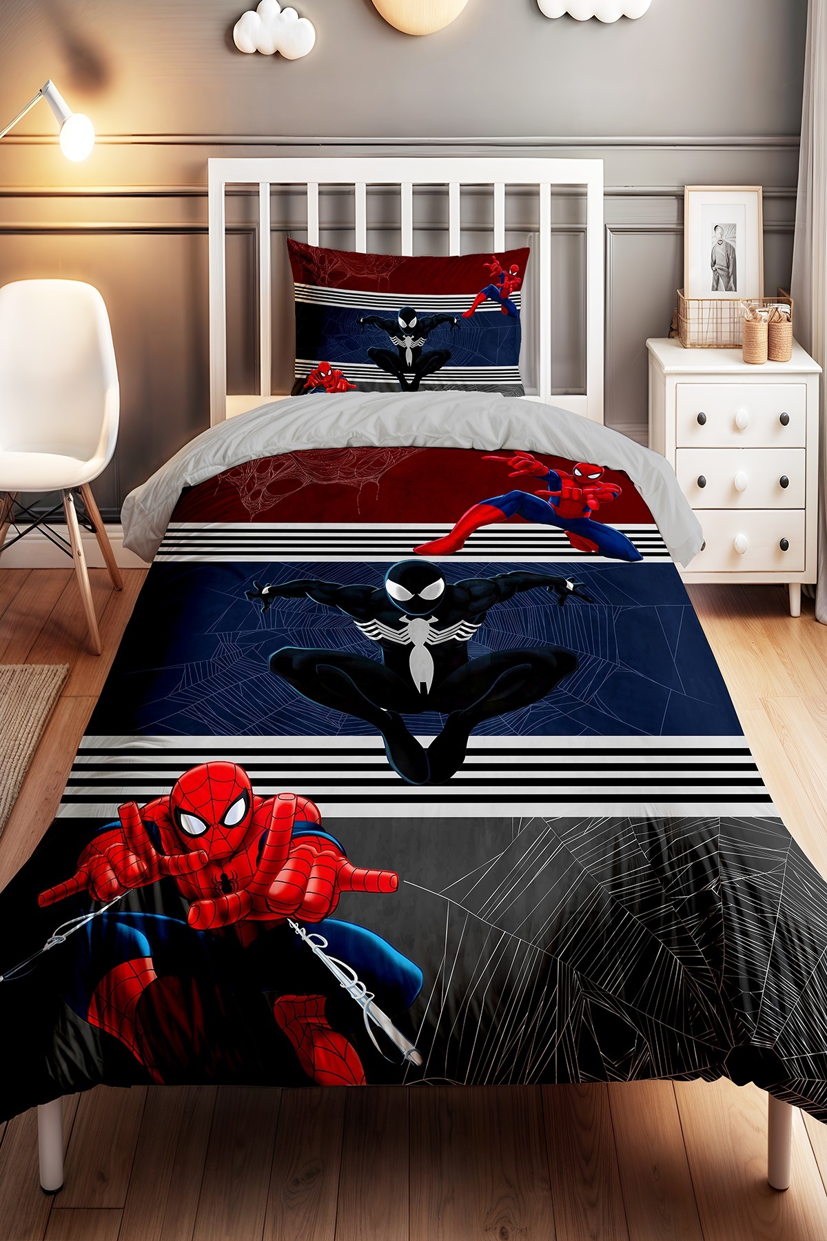 EVPANYA Koyu Zeminde Kahramanlar Desenli Tek Kişilik Bebek Çocuk Nevresim Seti