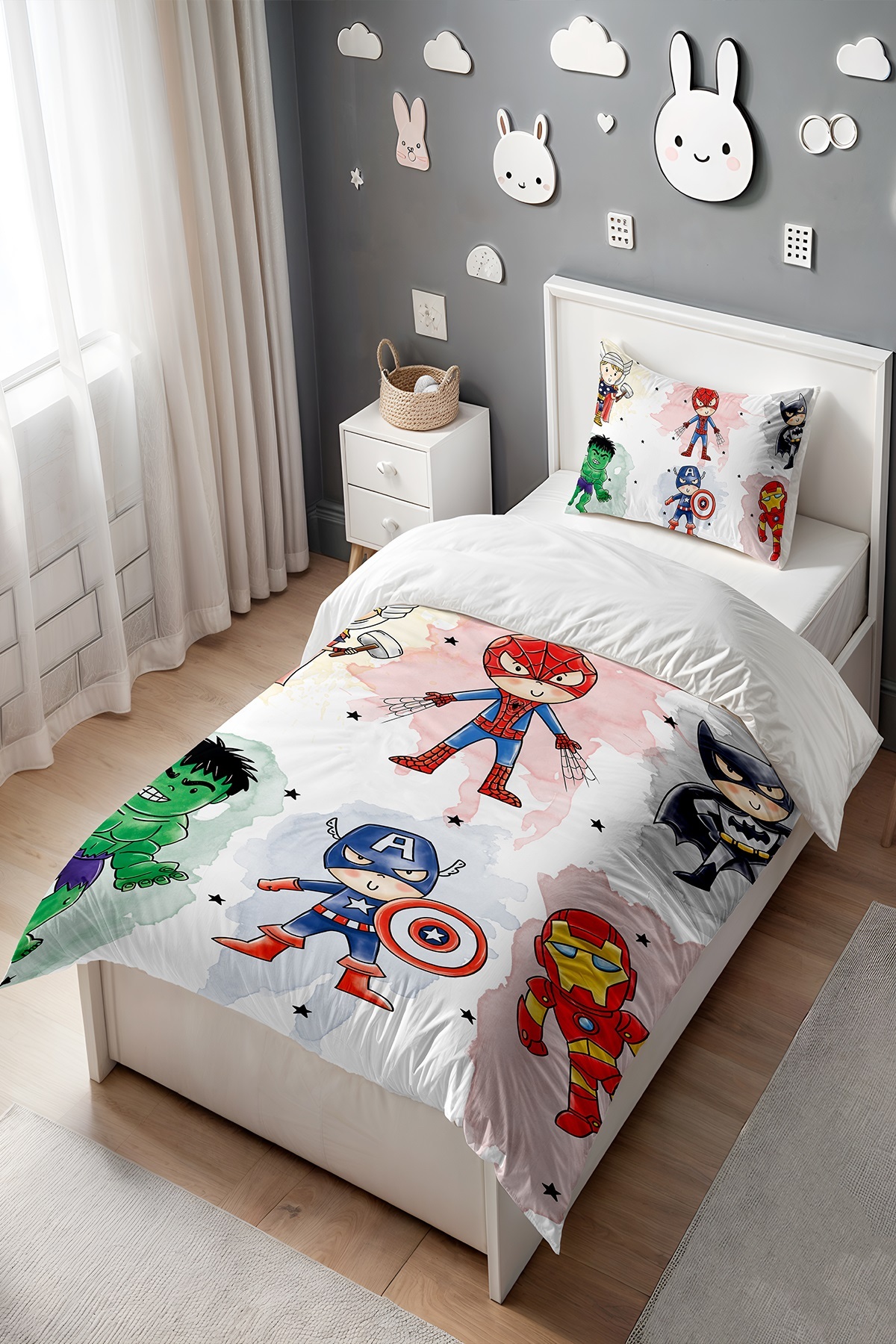 EVPANYA Minik Süper Kahramanlar Desenli Tek Kişilik Bebek Çocuk Nevresim Seti