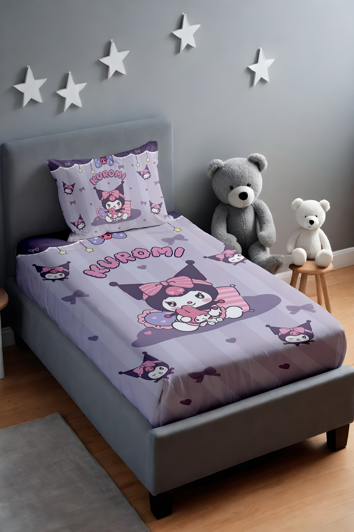 EVPANYA Mor Şeritli Oyuncu Kuromi Desenli Yatak Örtüsü ve Yastık Kılıfı ürünü ucuz fiyat, hızlı kargo imkanı ile hemen sitemizden sipariş verin.