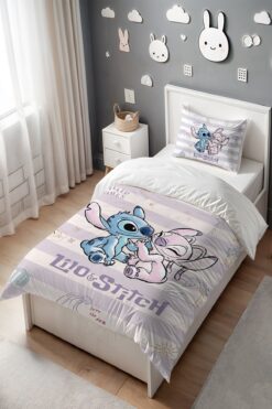 EVPANYA Stich ve Arkadaşı Desenli Tek Kişilik Bebek Çocuk Nevresim Seti
