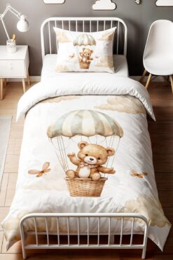 EVPANYA Bulutlar Üzerindeki Sevimli Ayıcık Desenli Tek Kişilik Bebek Çocuk Nevresim Seti