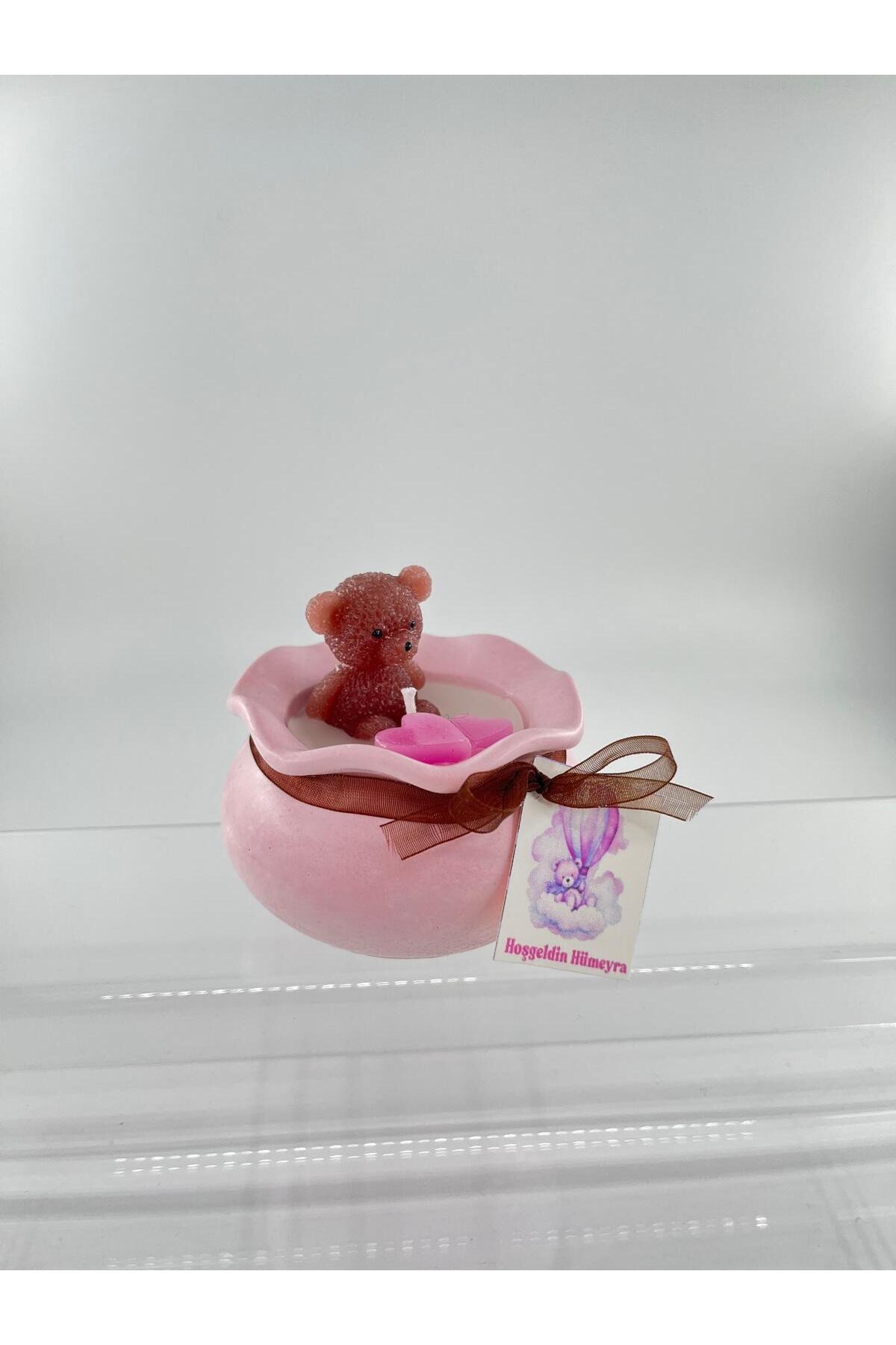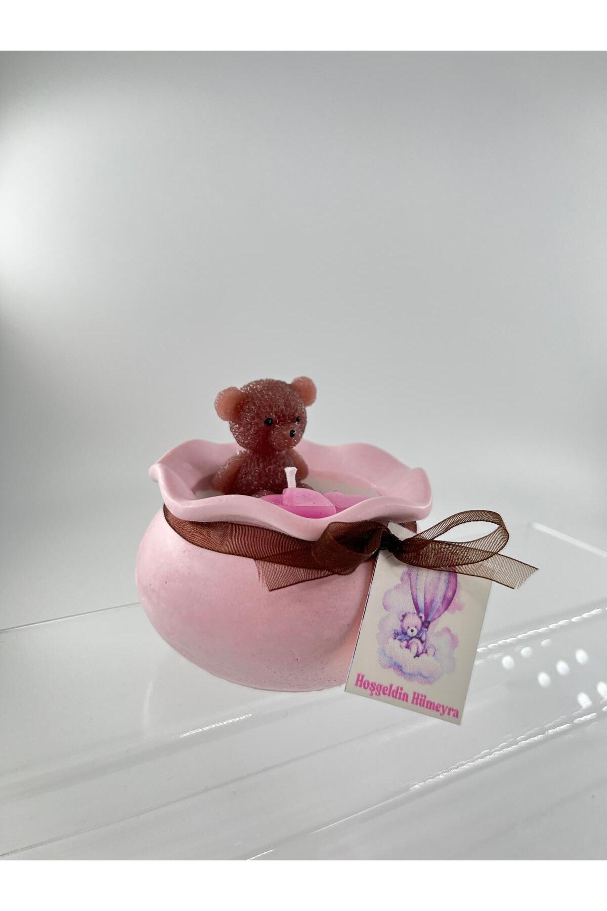 EvremStore Baby Shower, Doğum Günü, Mevlüt Beton Kalıp Ayıcık ve Kalpli Mum Hediyelik 5 Adet