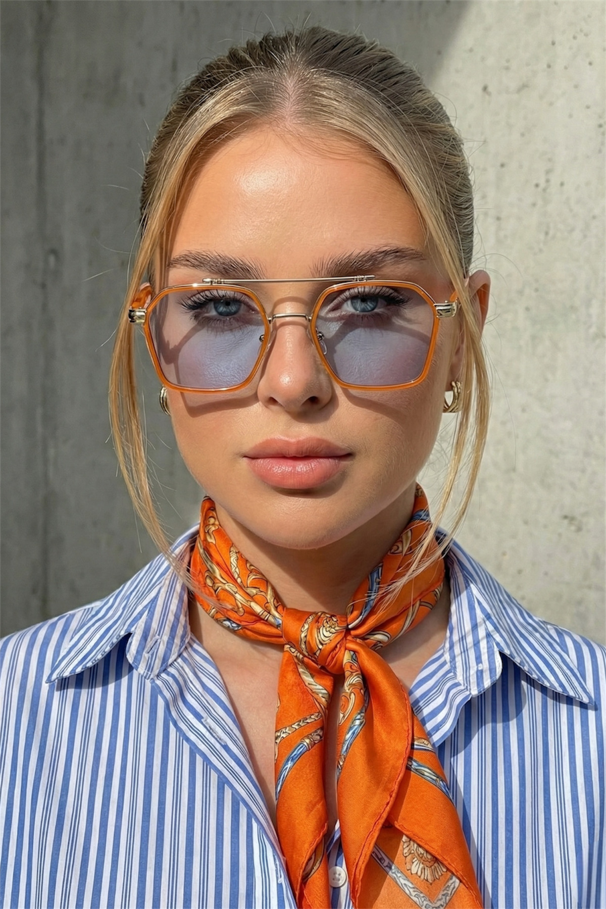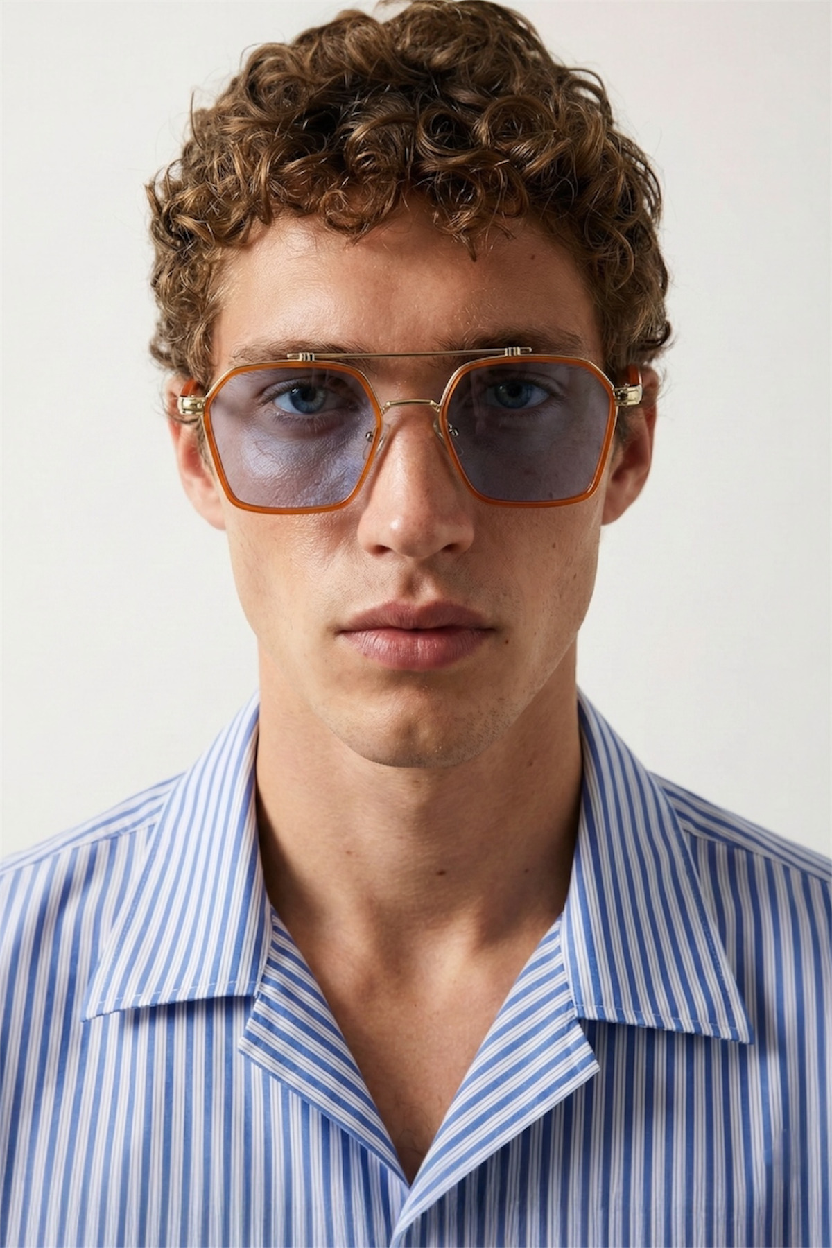 Eyesofia Bild Unisex Vintage Mavi Cam Turuncu Çerçeve Güneş Gözlüğü