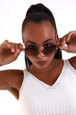 Eyesofia Crystal Dot Kare Kahverengi Degrade Ultra Hafif Uv400 Korumalı Kadın Güneş Gözlüğü