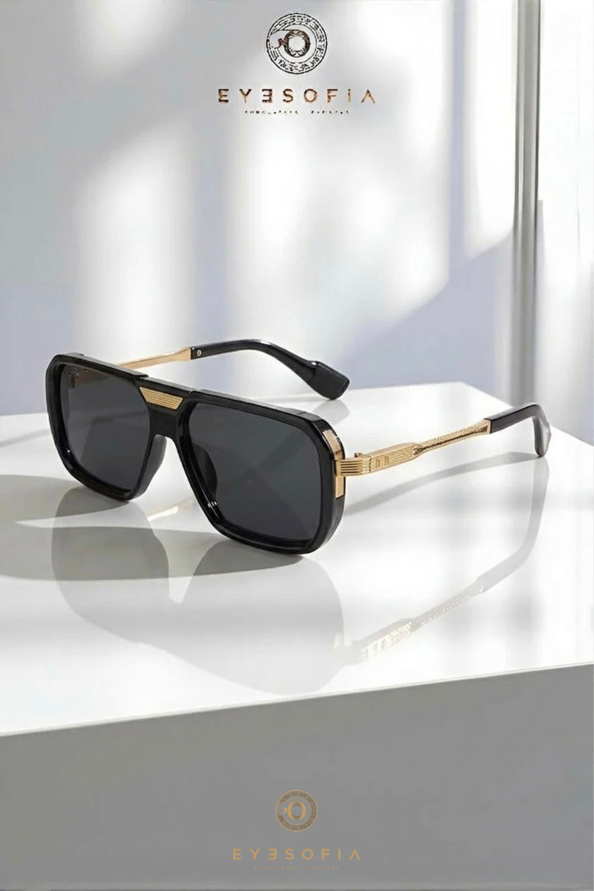 WATCHOFROYAL Güneş Gözlüğü Kadın & Erkek Uv400 Cam Ce Belgeli Gold Siyah Hexaw (SİYAH SAPLI)