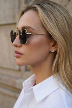 Eyesofia Metal Unisex Kare Gold Siyah Uv400 Güneş Gözlüğü
