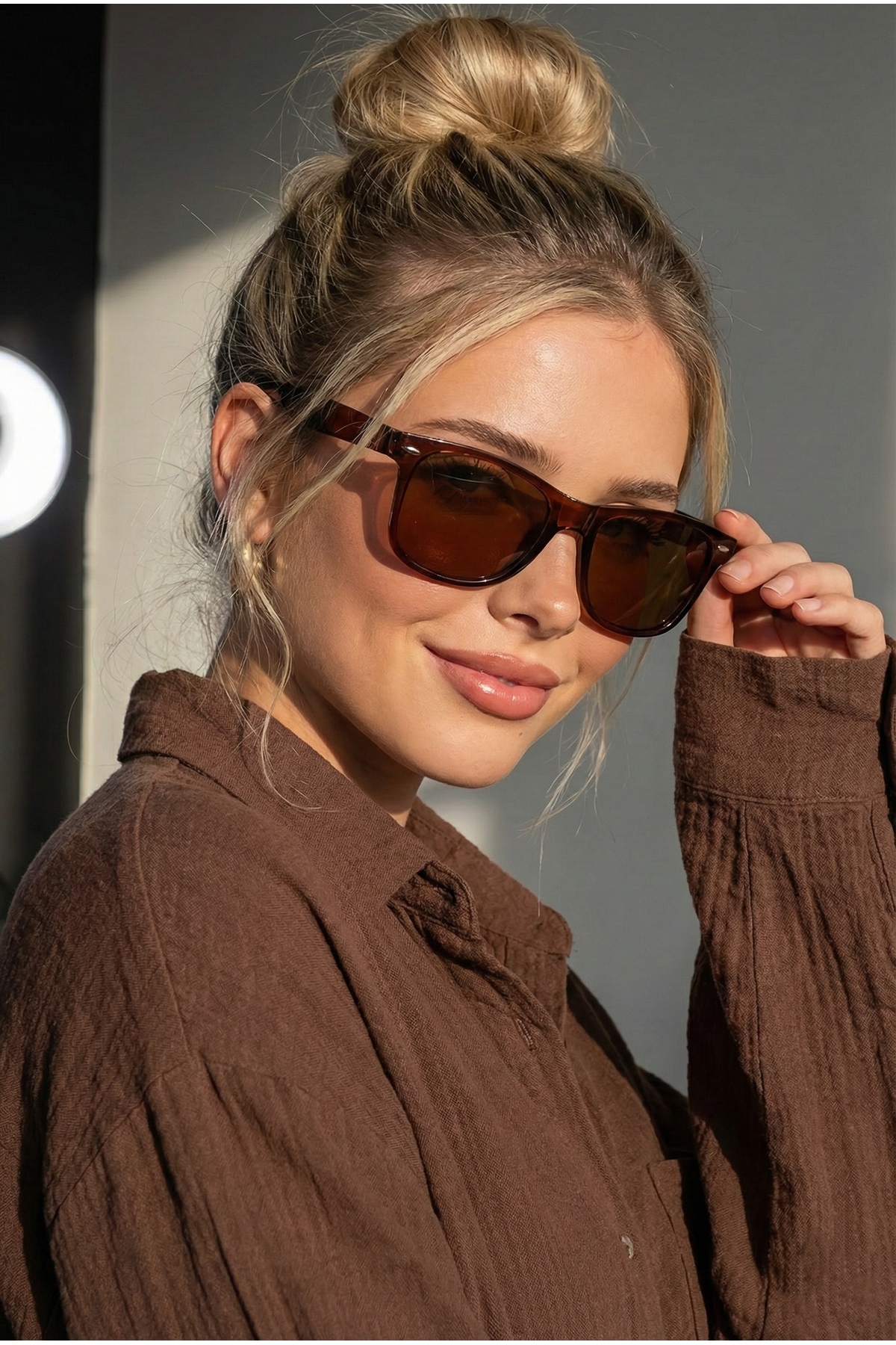 Eyesofia Unısex Kahverengi Clasik Vintage Güneş Gözlük