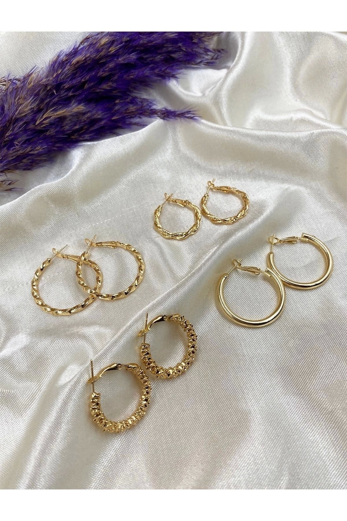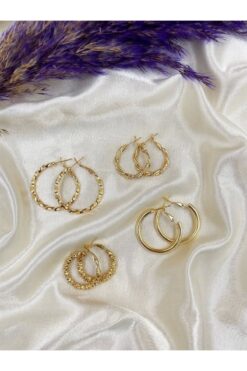 Eylülün Takısı Gold Renk 4 Çift Klipsli Halka Küpe