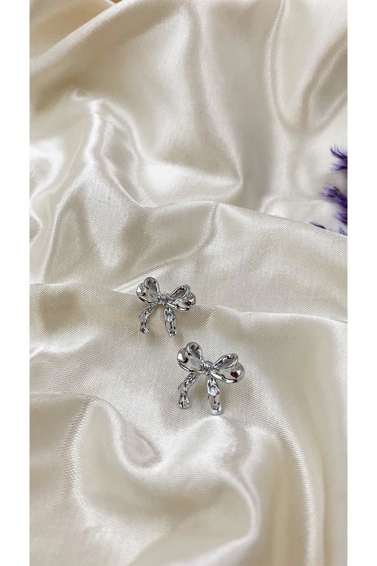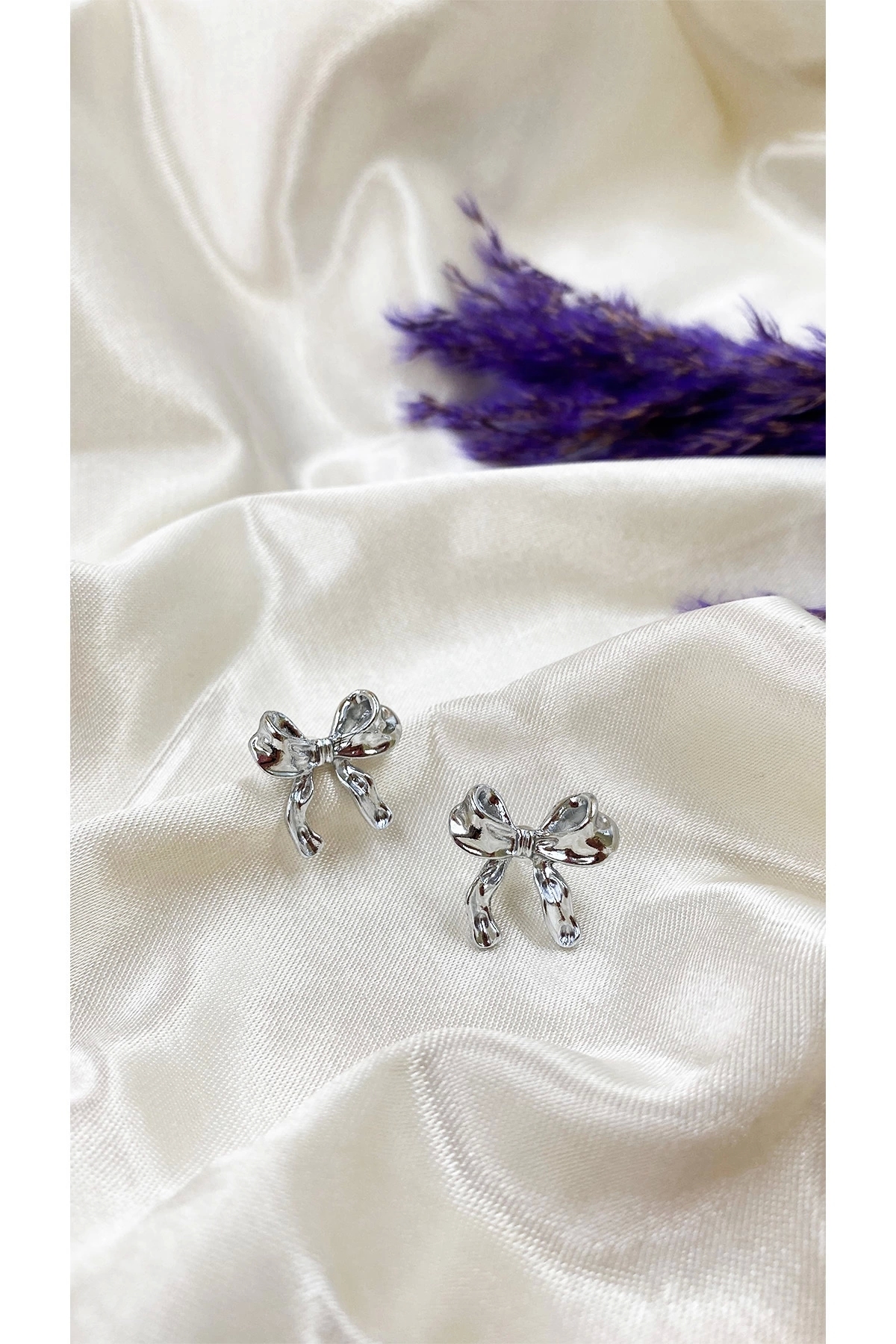 Eylülün Takısı Gümüş Renk Küçük Boy Sallantılı Fiyonk Küpe