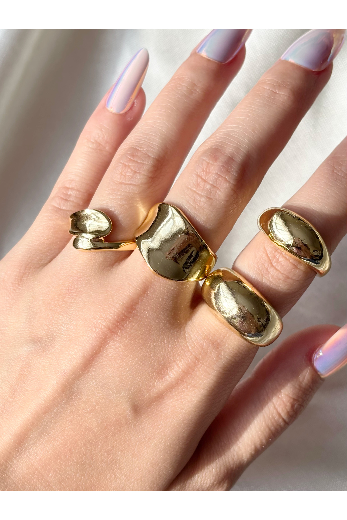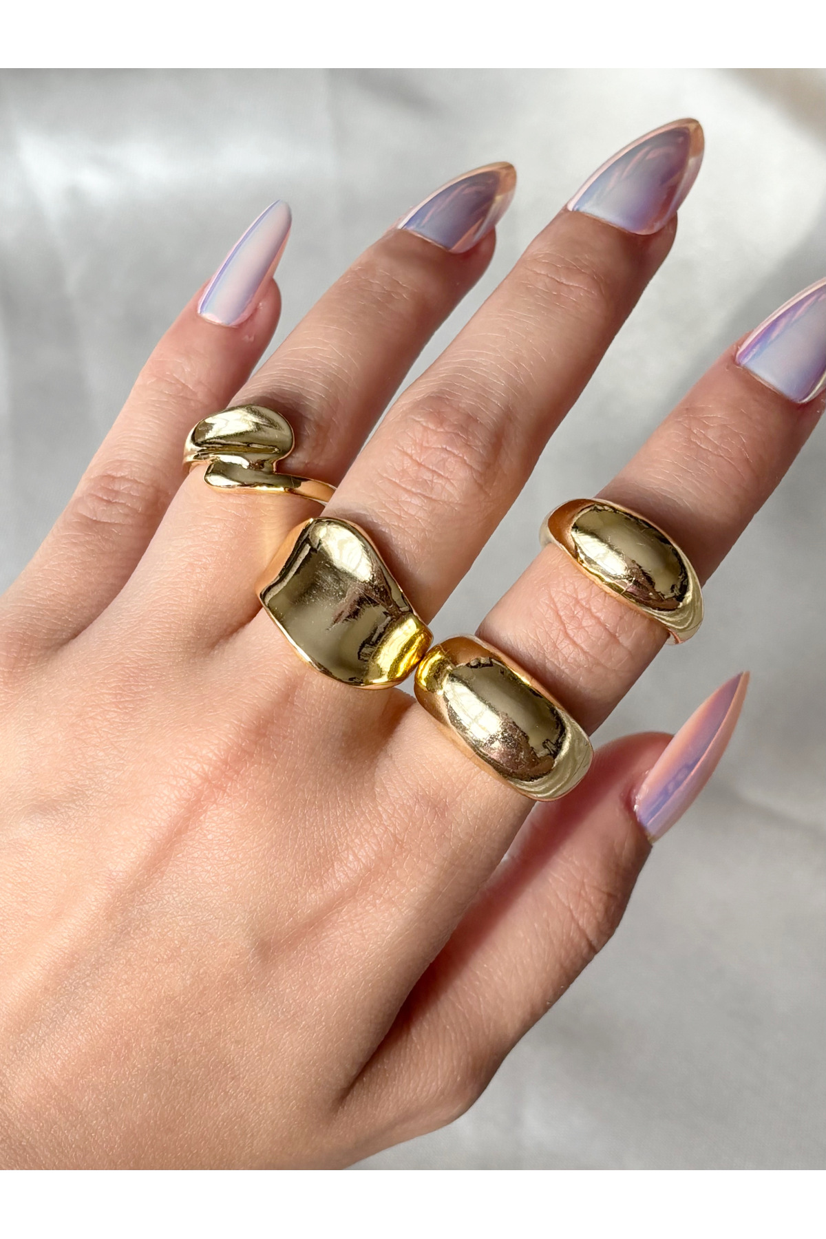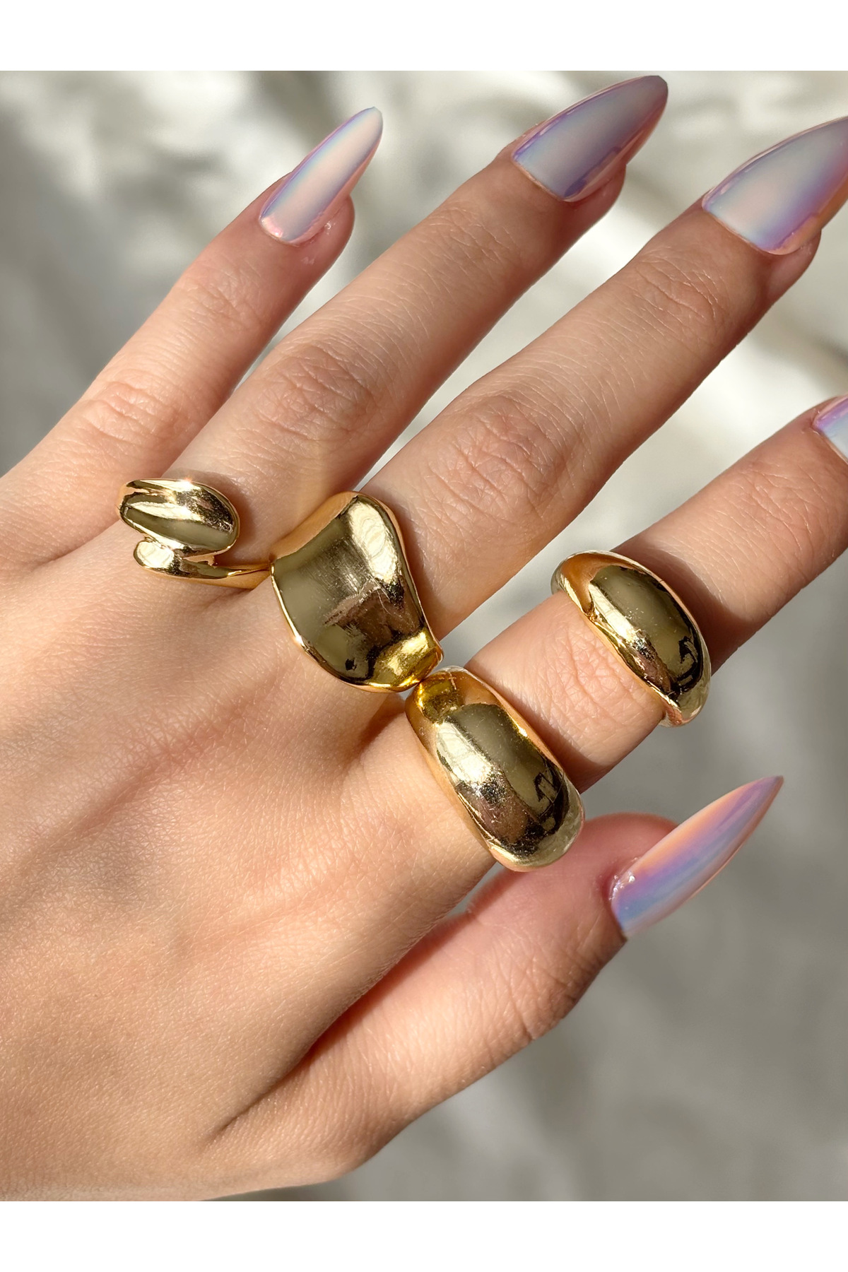 Eylülün Takısı Kadın Gold Renk 4 lü Tasarım Yüzük Seti