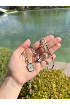 Eylülün Takısı Kadın Gümüş Renk 3 Adet Mineli Kalp Zincir Kolye Seti