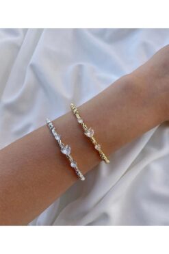 Eylülün Takısı Kadın Gümüş Renk Taşlı Kalp Dorika Bileklik