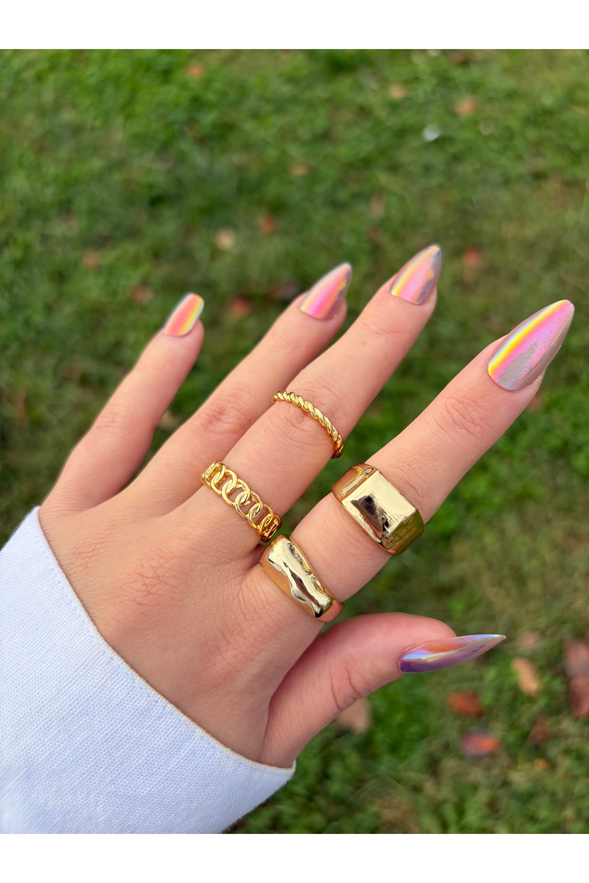Eylülün Takısı Kadın Minimal & Kalın Gold Yüzük Seti