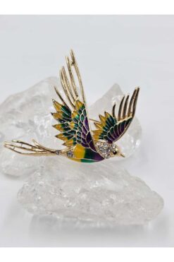 FA LORA TAKI Altın Kaplama Renkli Mineli Zirkon Taşlı Kırlangıç Kuş Broş
