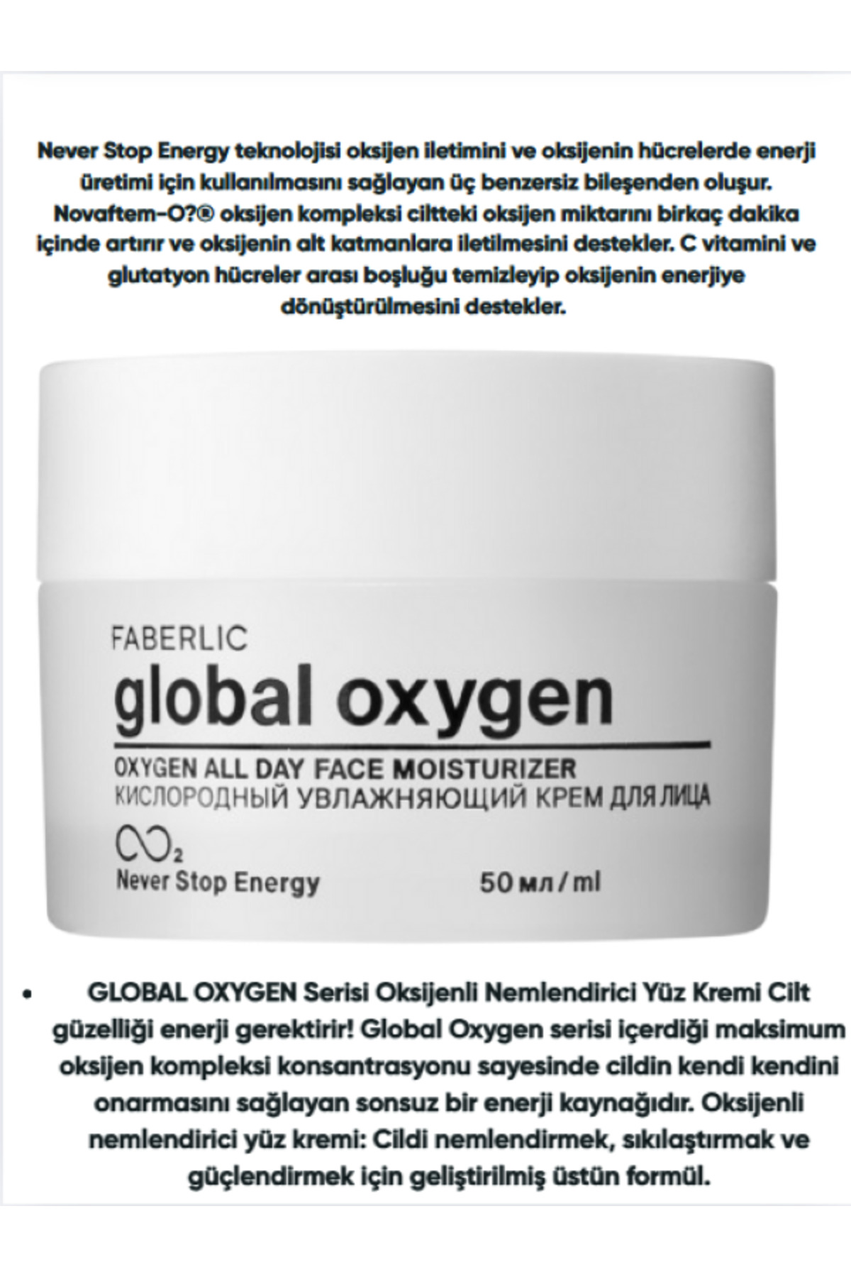 Faberlic Global Oxygen Serisi Oksijenli Nemlendirici Yüz Kremi