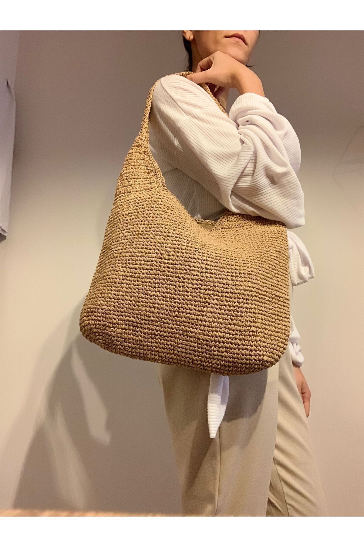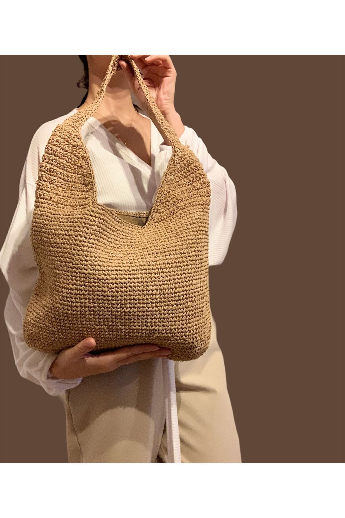 FAHA NATURAL Örgü Kağıt Ip Hasır Omuz Kol Çantası
