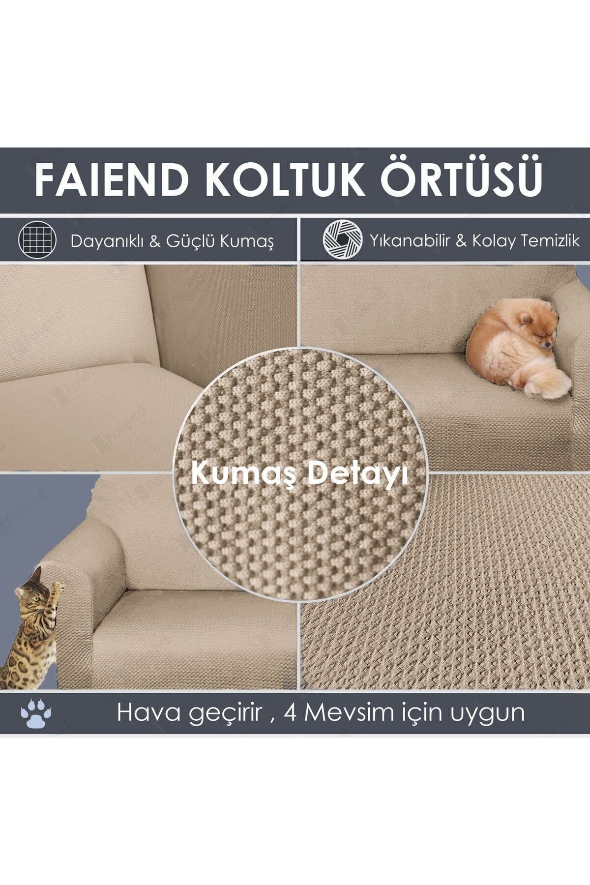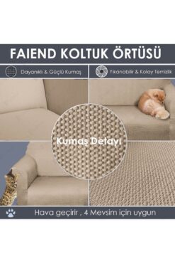 Faiend Chester 3 Kişilik Vizon Lastikli Kanepe Örtüsü | Lastikli Koltuk Örtüsü | koltuk kılıfı