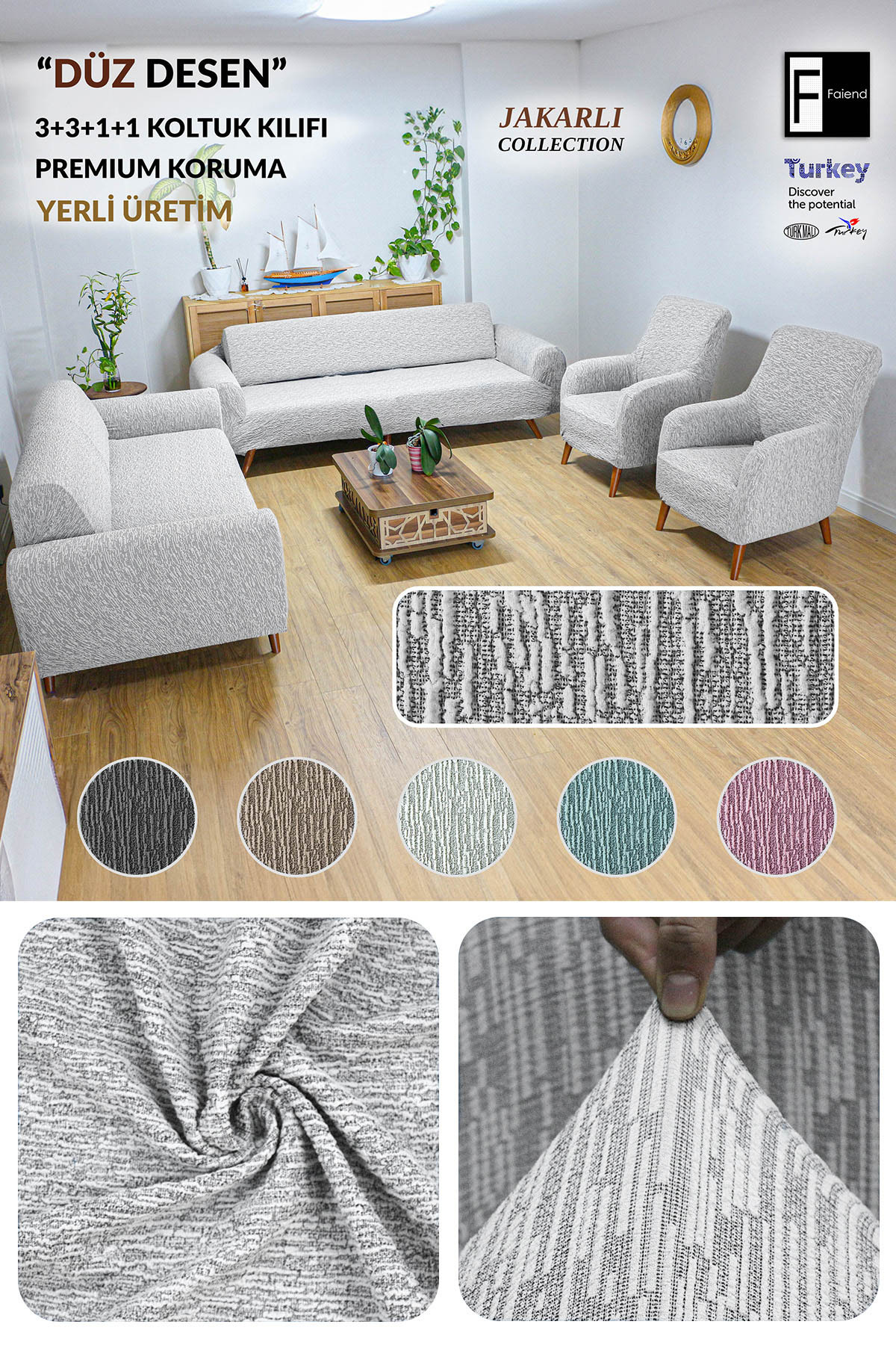 Faiend Jakarlı 3 3 1 1 Taş-gri Lastikli Kanepe Örtüsü | Lastikli Koltuk Örtüsü | koltuk kılıfı Takımı