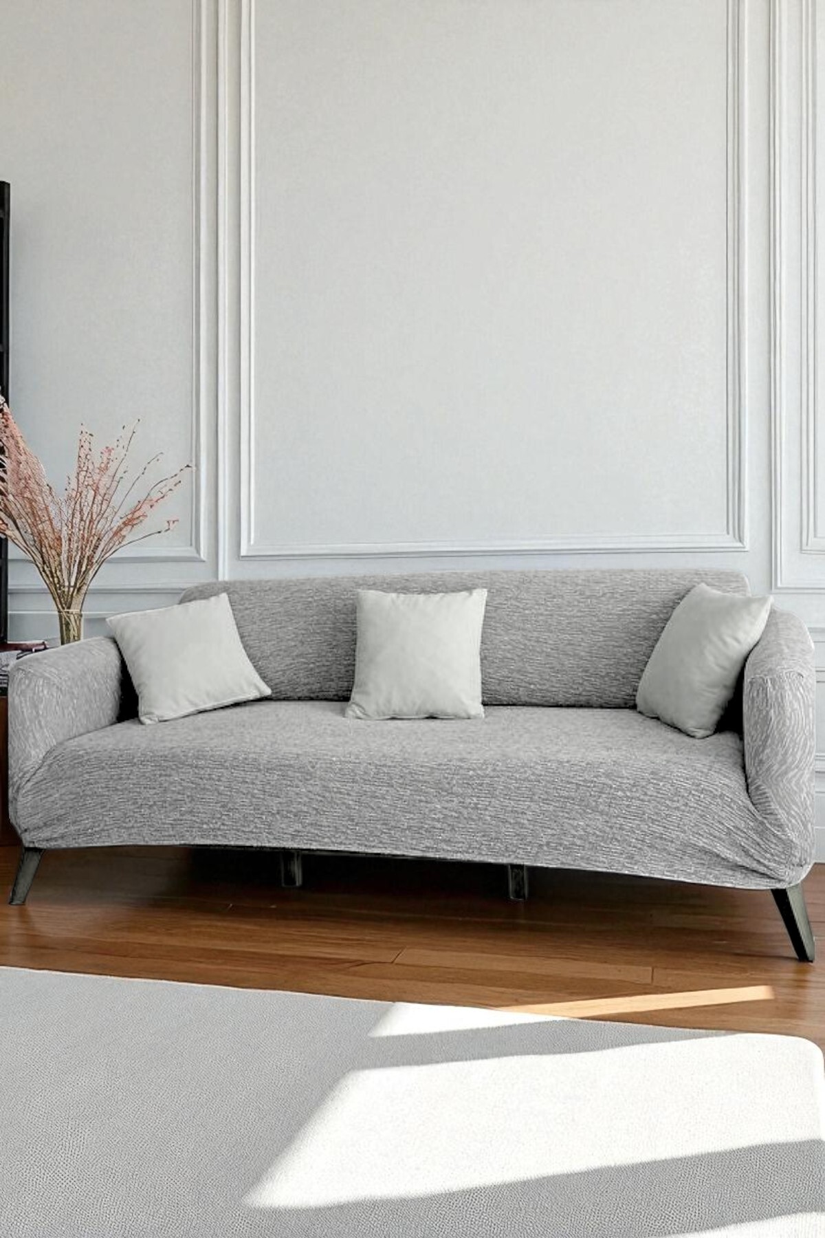 Faiend Düz Jakarlı 3 Kişilik Gri Kanepe Örtüsü | Lastikli Koltuk Örtüsü |çekyat Örtüsü| koltuk kılıfı