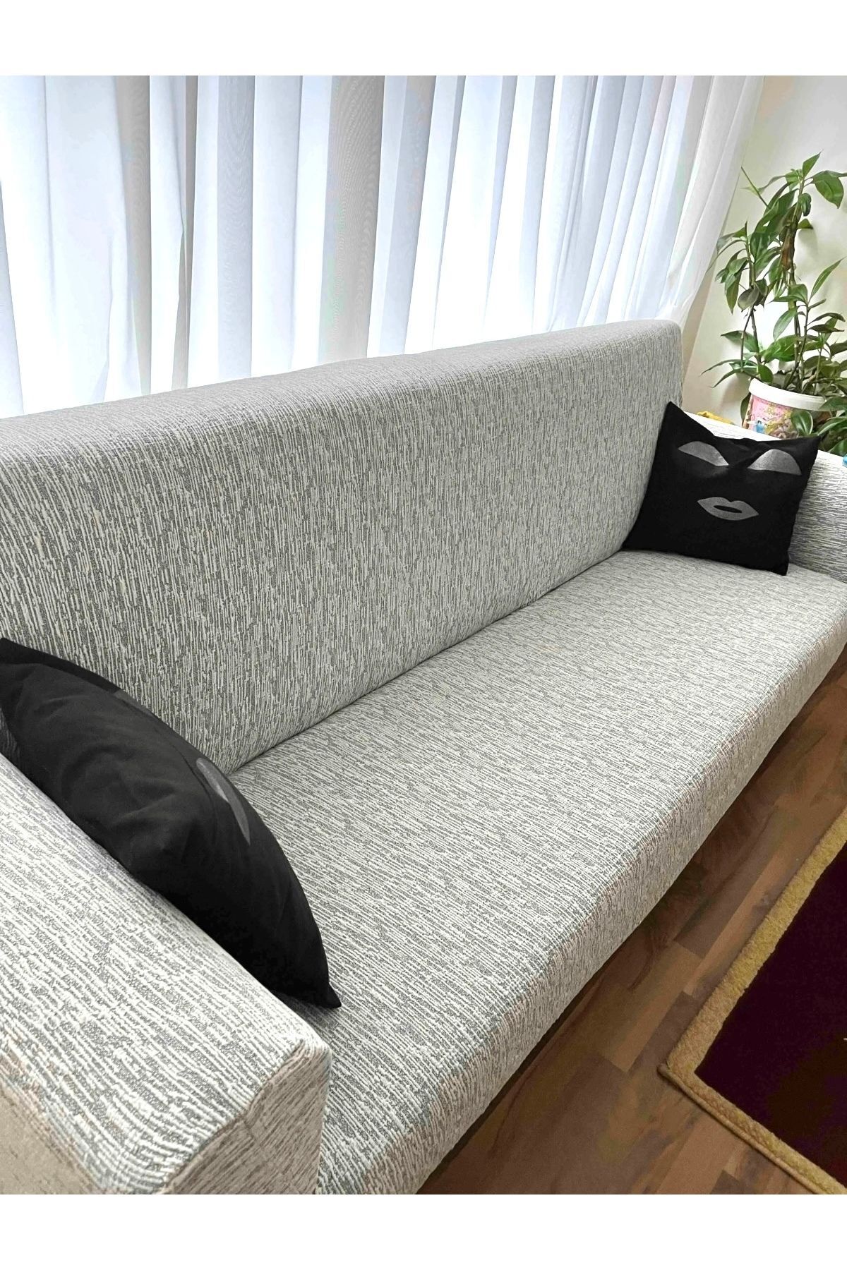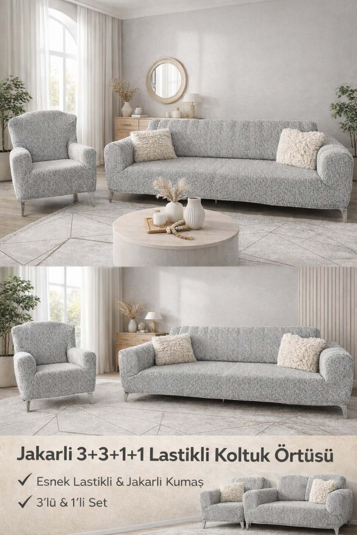 Faiend Jakarlı 3 3 1 1 Taş-gri Lastikli Kanepe Örtüsü | Lastikli Koltuk Örtüsü | koltuk kılıfı Takımı