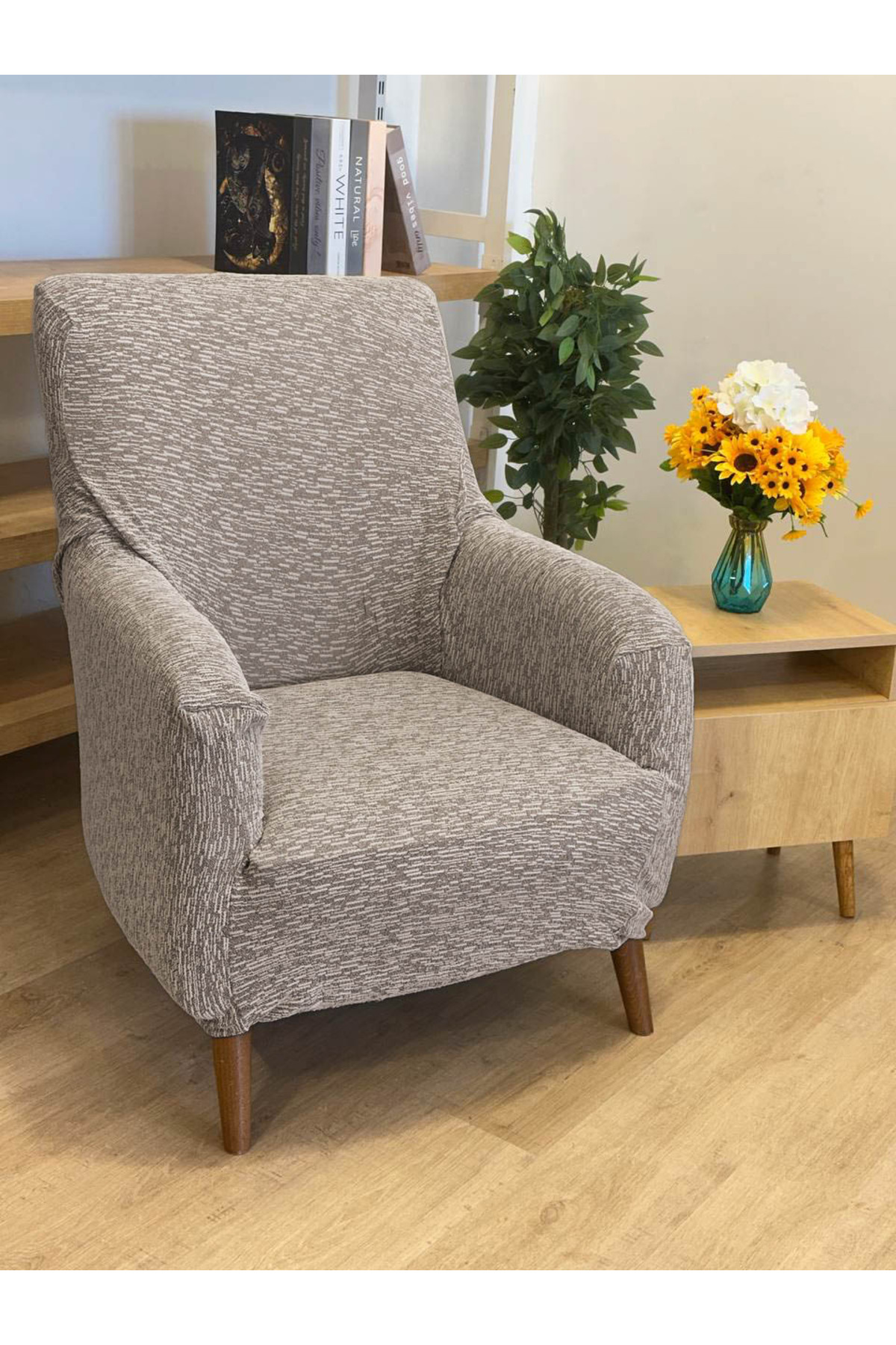Faiend Streç Lastikli Esnek Yıkanabilir Pamuklu Jakarlı Desen Tekli Koltuk Örtüsü Koltuk Kılıfı (1- Adet)