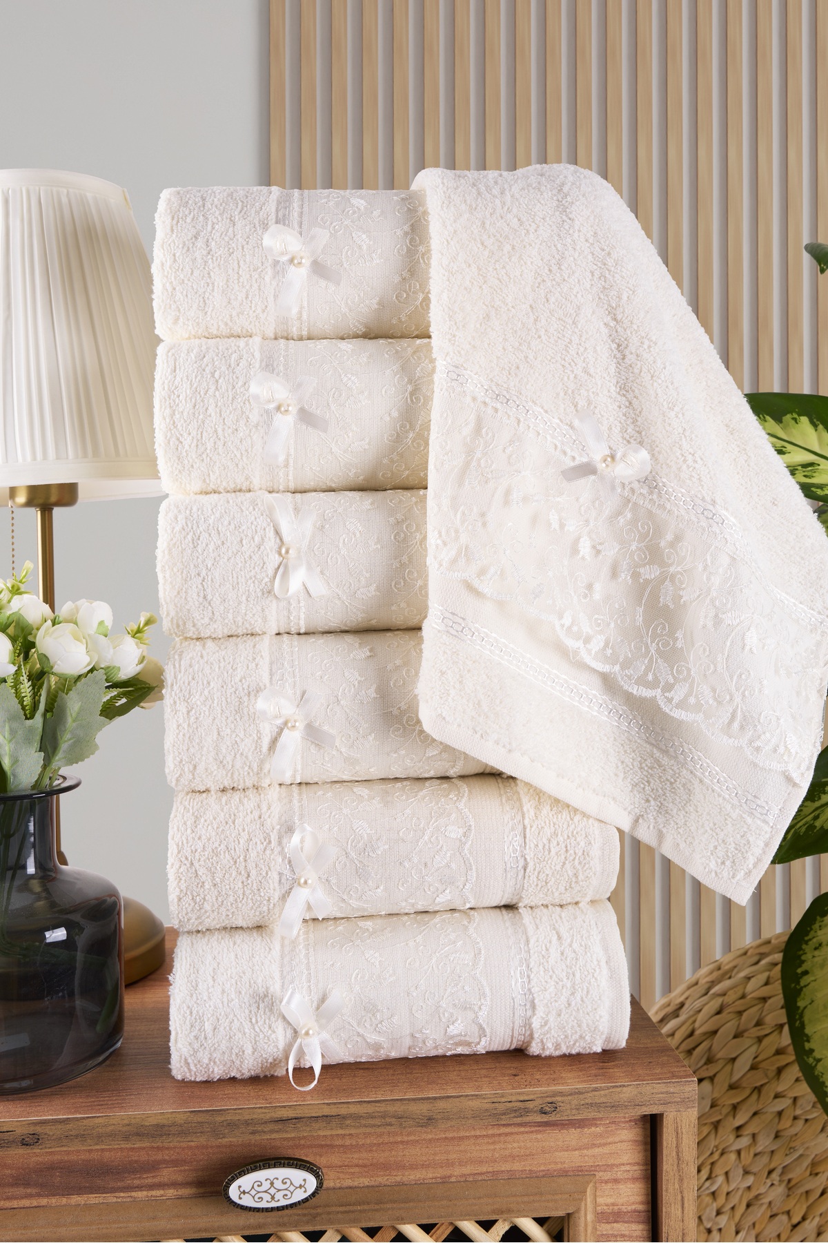 Familia Home 6’lı Güpürlü Kurdeleli El&yüz Havlusu | Beyaz Starya
