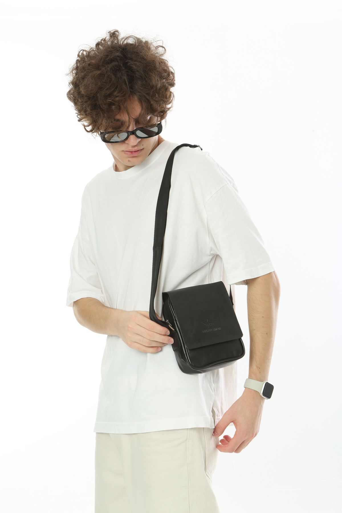 fao polo ERKEK SİYAH RENK KÜÇÜK BOY DERİ UZUN ASKI AYARLI ÇAPRAZ EL OMUZ VE GÖĞÜS ÇANTASI