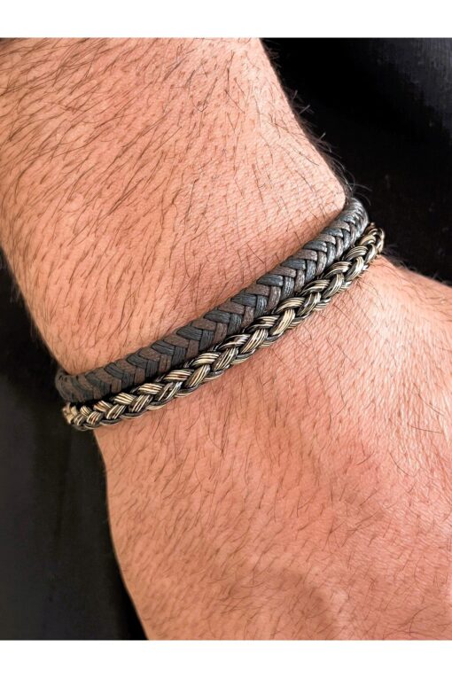 Farah Butik Erkek İp Örgü ve Deri Örgü Kahverengi Mıknatıs Tokalı-Hediyelik Bileklik