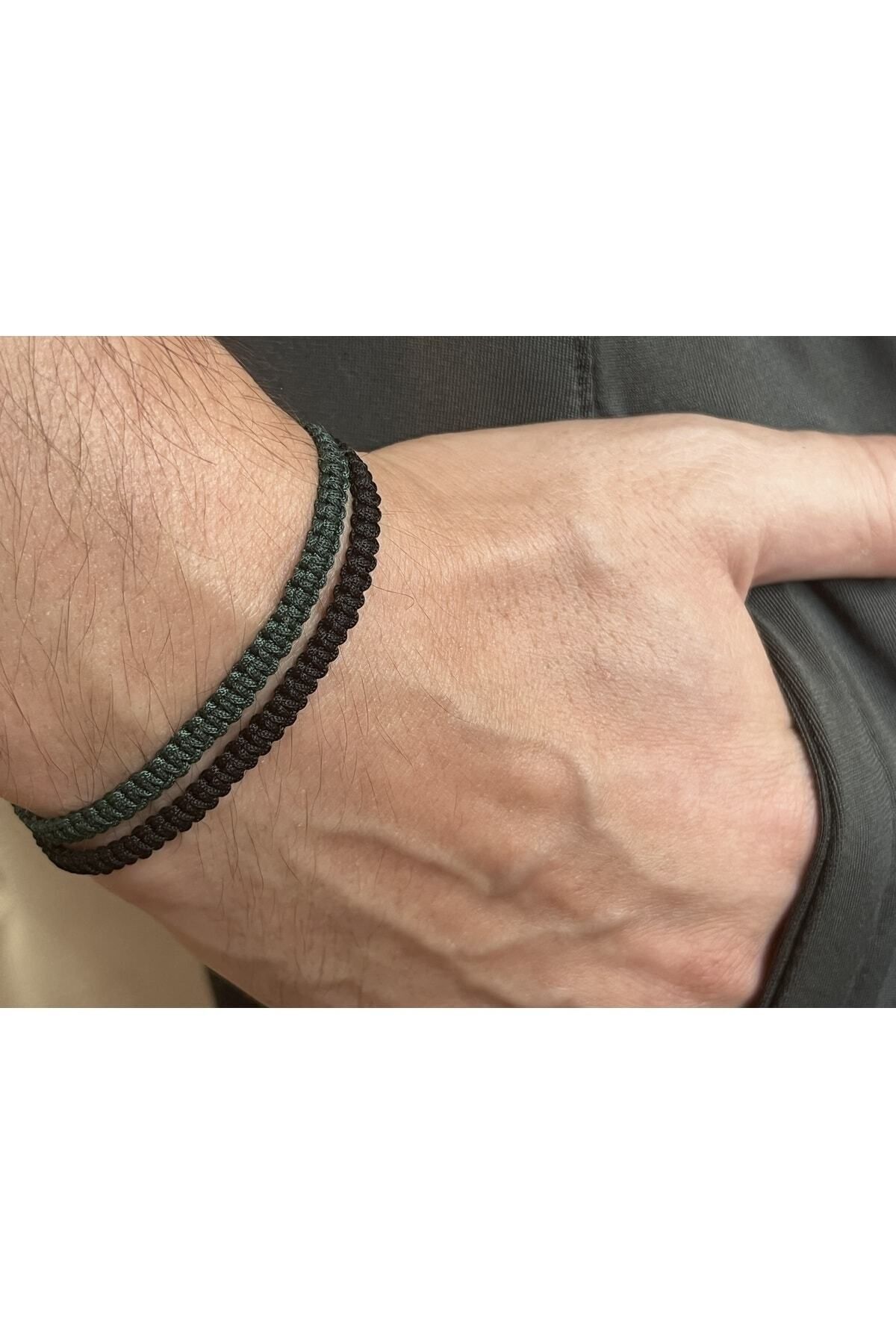 Farah Butik Unisex Makrome Bileklik Siyah Haki Yeşil-hediyelik Bileklik-ip Bileklik