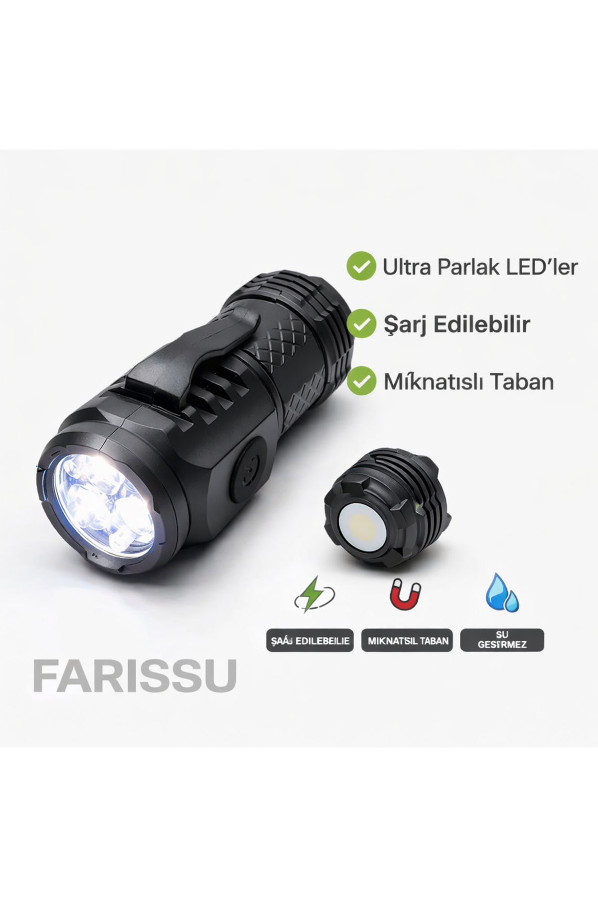 farissu 3 LED’li Güçlü Mini El Feneri Şarj Edilebilir Type-C