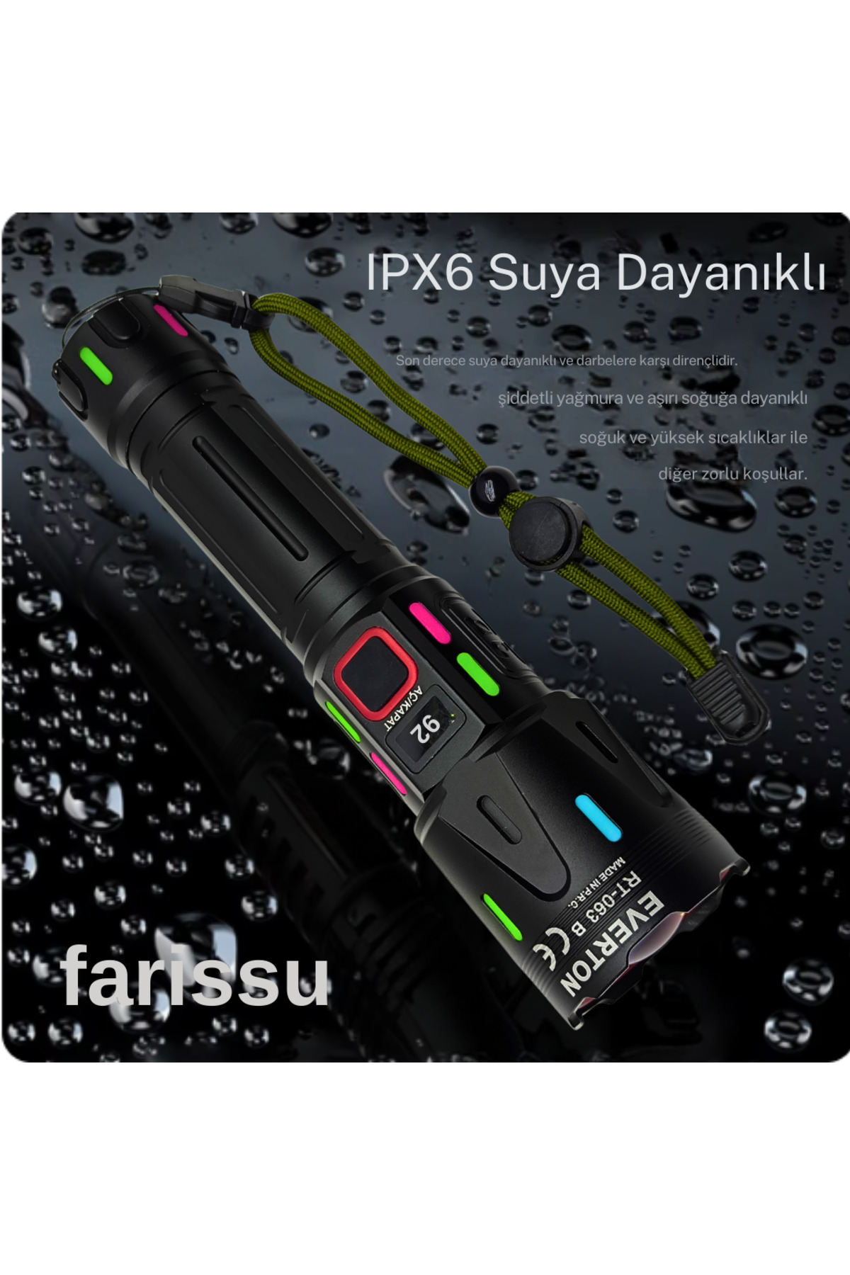 farissu RT-063 B 60W 6000 Lümen Ultra Güçlü Beyaz Lazer LED El Feneri - 2 KM Menzilli & Powerbank Özellikli ürünü ucuz fiyat, hızlı kargo imkanı ile hemen sitemizden sipariş verin.