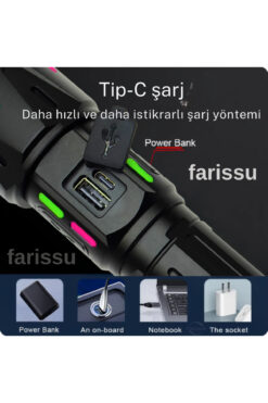 farissu RT-063 B 60W 6000 Lümen Ultra Güçlü Beyaz Lazer LED El Feneri – 2 KM Menzilli & Powerbank Özellikli